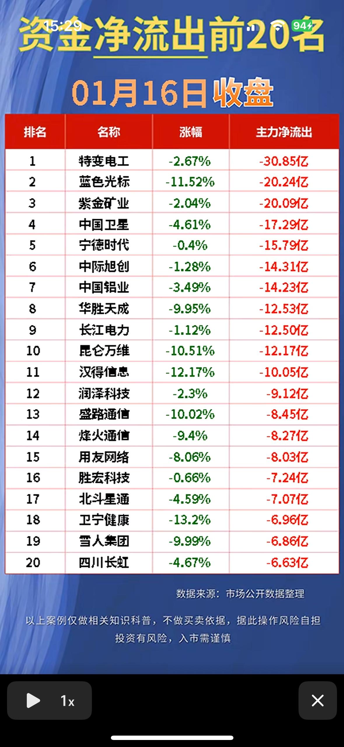 “1月16日净流出前20名,快来避雷!”🚨 资金流入榜:兆易创新领涨,三安光电、长电科技等紧随,市场热度集中科技