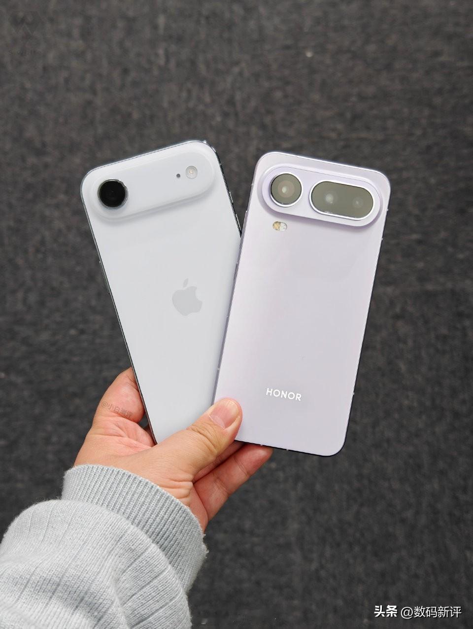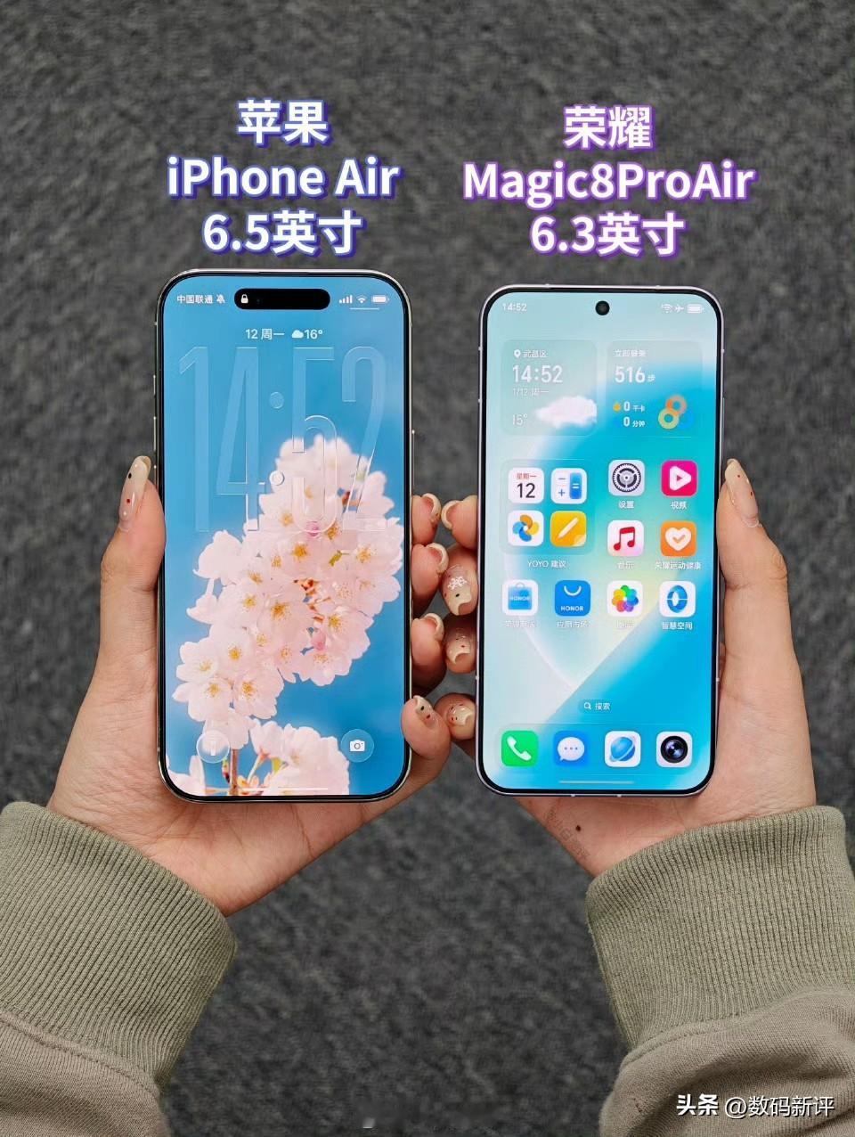 荣耀magic8Pro air对比苹果air[思考]单看配置荣耀强了不知道多少倍[捂脸]5500毫安电池还有50瓦无线,前置五千万像素+后置6400万像素潜望长焦,双扬声器,重量155克,这堆叠能力够苹果学的了[灵光一闪]还有独立ai按键,就是不知道起售价多少,该不会4999起吧?即是Pro也叫air