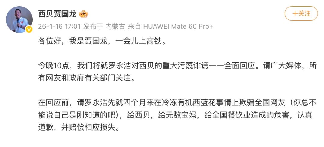 罗永浩和西贝这事儿,折腾125天了,终于有结果了。102家西贝门店要关了,4000员工受影响。 老贾说今晚10点要全面回应,还要老罗为“冷冻有机西兰花”道歉赔偿。 想起去年9月,老罗一条微博点燃战火:“西贝全是预制菜,还死贵,太恶心了。”贾国龙当时硬气得很,要起诉,还开放全国后厨随便看。结果呢?越描越黑。 最讽刺那道“鸡汤炖豆腐”,用的“风味鸡汤半固态调味料”,保质期12个月,可菜单就写“鸡汤”。 消费者觉得被骗了,西贝觉得委屈——中央厨房备菜,不算预制菜啊!可老百姓不认这套。 老罗昨天发长文,说锤子倒闭是自己没做好,不是被黑倒的。这话有点道理,但西贝这102家店,确实是在这场口水战里倒下的。 看贾国龙这几个月,吃安眠药、处理不完的破事儿,说要是西贝没了就回草原养羊。听着心酸,但餐饮这行,光有“真性情”不够了。 消费者要的是透明,是知情权,是你别拿调理包当现做卖高价。 今晚10点,看老贾怎么收场。但不管怎么说,那102家店是回不来了。 这125天,没赢家,只有教训:时代变了,真诚不是挡箭牌,尊重消费者才是活下去的路。