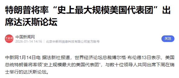 美国突然官宣! 美国总统特朗普将会率领美国史上规模最大的代表团,于1月19日至