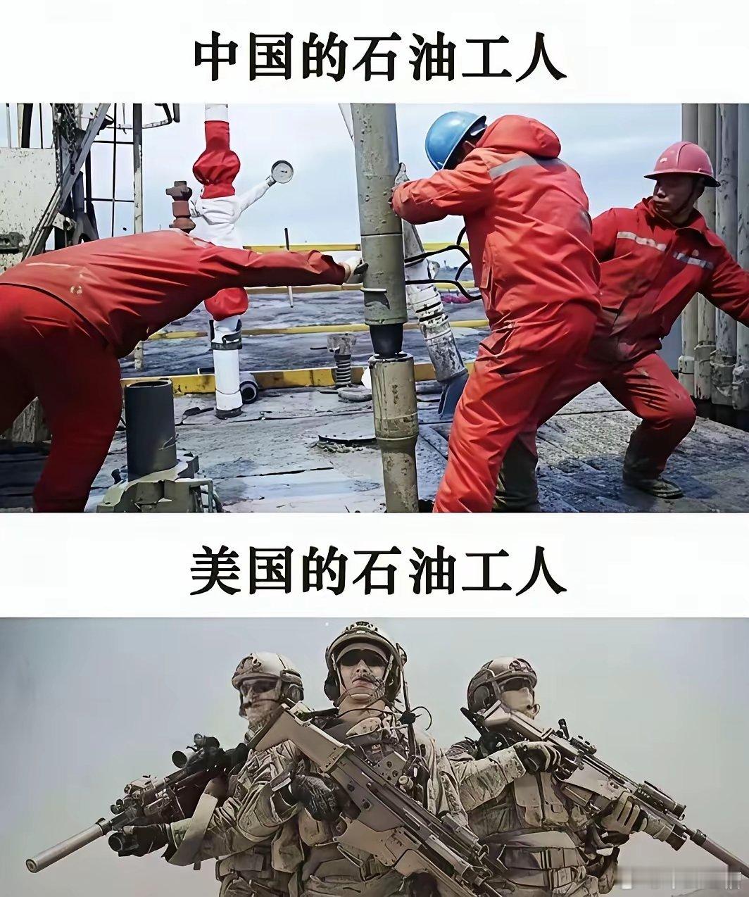 中国石油工人VS美国石油工人还得是美国石油工人厉害,直接带枪上岗