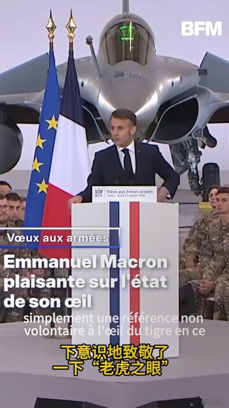 马克龙右眼血管破裂周四,马克龙在伊斯特尔战略空军基地向军队致贺词时,被发现右眼充血。在开始讲话之前,马克龙特意对此作出了解释。“请原谅我眼睛的不美观。这只是件小事。”他保证道,然后语气轻松地补充道:“就当它是老虎眼吧。懂的人都知道,这是决心的一种象征。”海外新鲜事