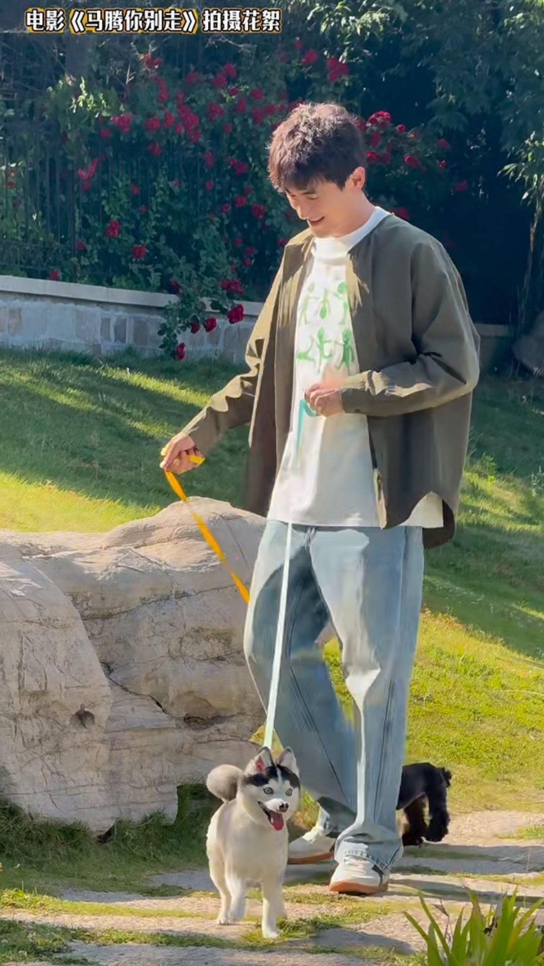 林更新电影《马腾你别走》遛狗花絮图~