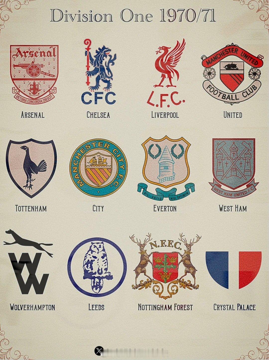 英超前身,英甲联赛,各支球队的老队徽 英超联赛 阿森纳著名教授
