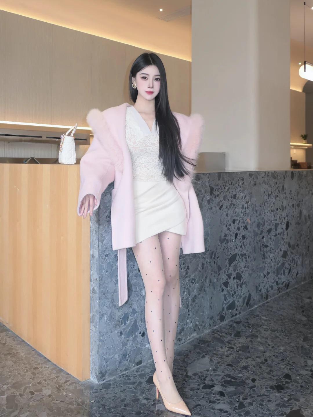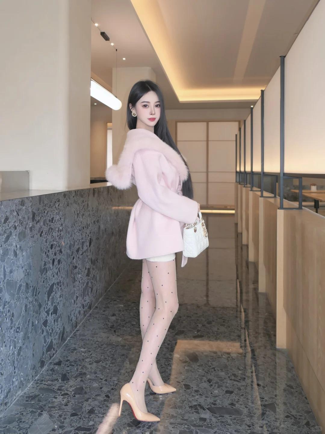 冬日小清新天花板非我女友莫属!💖 软糯的粉色毛毛大衣自带温柔滤镜,裹着她整个人都软乎乎的~内搭选了贴肤的裸色,简约又衬肤色,波点肤丝悄悄露边,添了点俏皮的小细节,再踩一双裸粉色高跟鞋,比例直接拉满!甜而不腻的氛围太绝了,走在路上都忍不住多看她几眼,冬天的浪漫大概就是看你把温柔穿在身上呀~