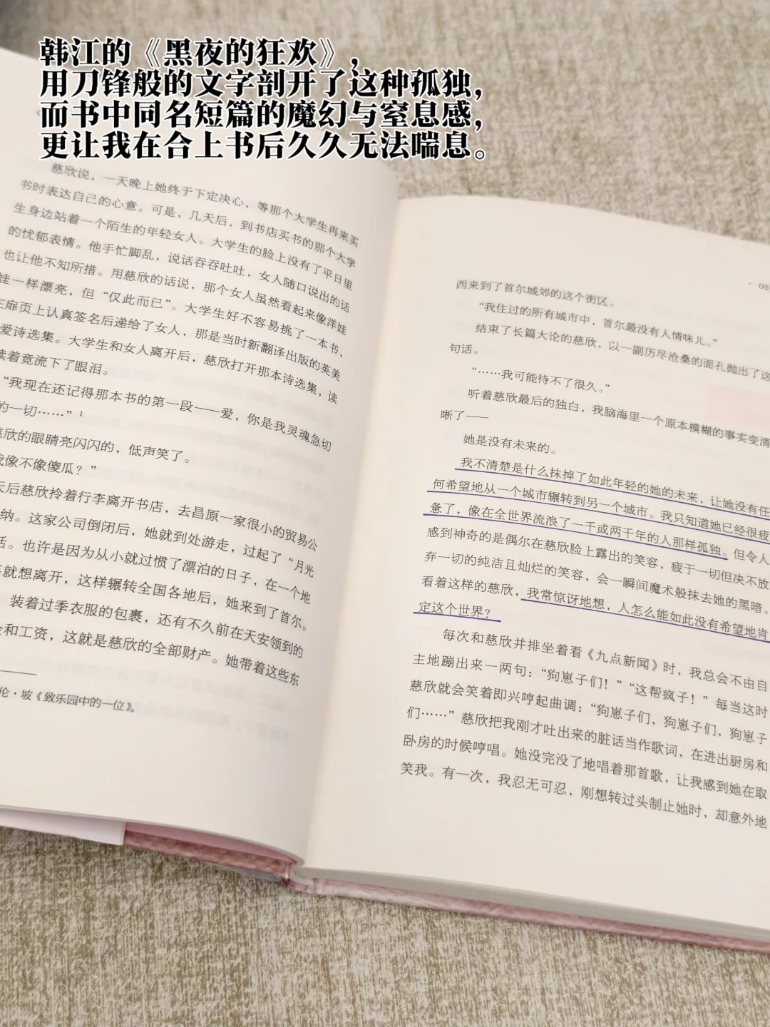 “在无数灯火通明的窗户中,却没有一个真正属于我的地方。”韩江用刀锋般的文字剖开了这种孤独,而书中同名短篇的魔幻与窒息感,更让我在合上书后久久无法喘息。