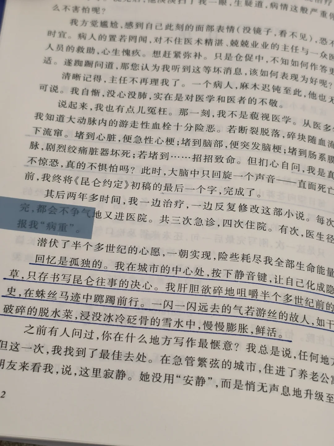 凌晨,一位年过七旬的老人躺在急诊室,血管里的血栓随时可能夺走她的生命。面对主治医生严肃地告知她的病情危急,她却只是轻声答了一个“哦”。此刻,她的大脑里只回旋着一个声音——直面死亡之前,终于将《昆仑约定》初稿的最后一个字,完成了。