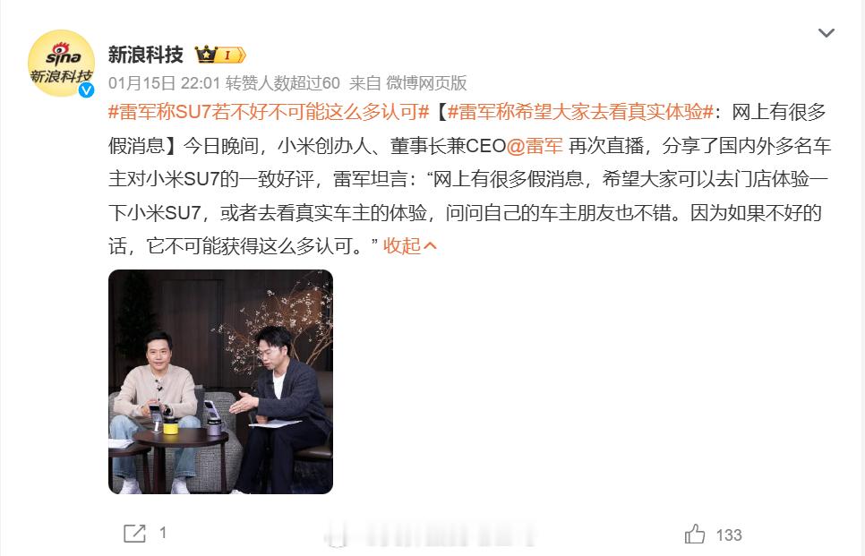 雷军称SU7若不好不可能这么多认可雷总说的没啥毛病,还有一些更贵更多人认可的车也