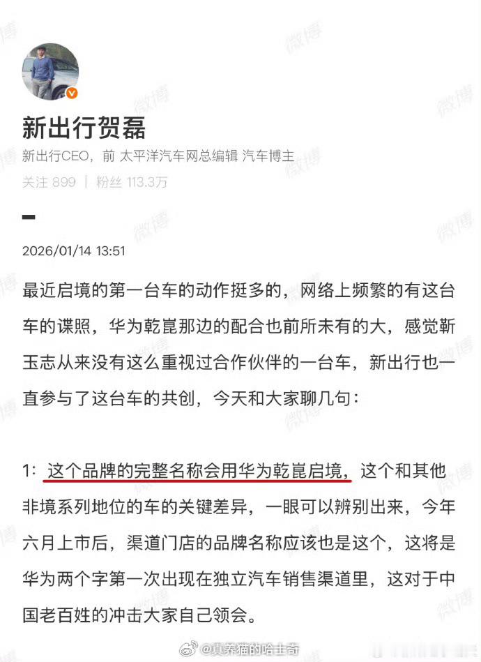 启境汽车回应用华为启境命名其实启境没有用华为命名,是这些大V水平实在太低了,或者眼镜不好用,中间的竖线都看不懂。