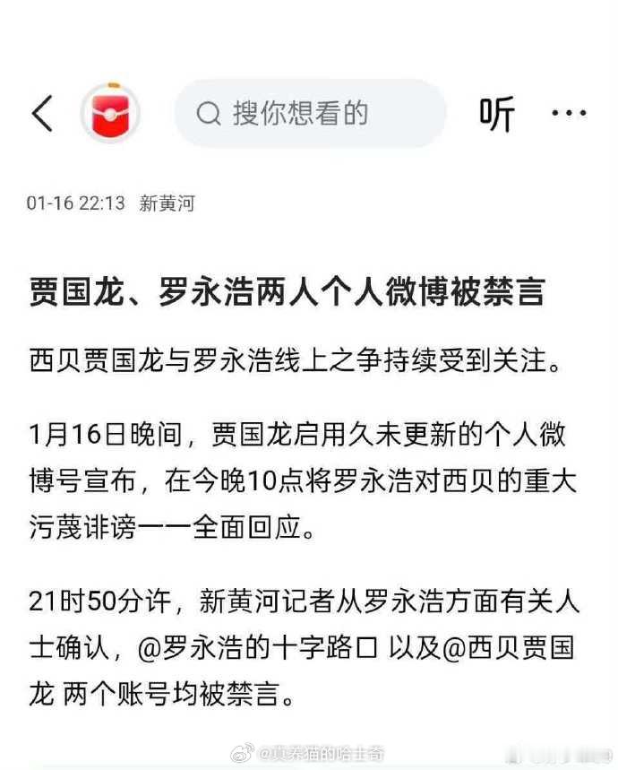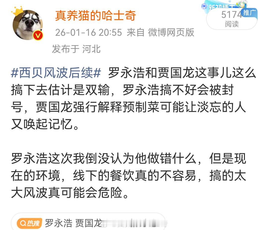 贾国龙罗永浩微博被禁言 据说是理记给贾国龙出的主意?我都能预测到罗永浩被禁言这结果,现在结果比我预料的更差,贾国龙不仅又唤起了大家对预制菜的讨论,还被禁言没法讨论了