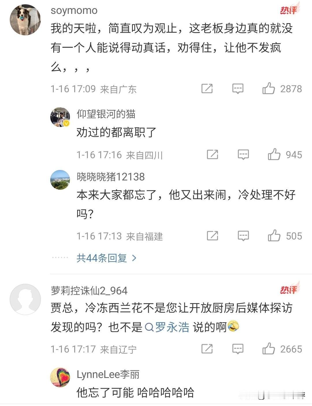 今年开年瓜实在太多了,都来不及吃了…… 西贝贾老板又开始闹起来了,准备今晚10点开撕罗永浩!!!他估计嫌门店关的还不够多 我去他的评论区瞄了一圈,都是劝贾老板别犟了,消停一下之类阴阳他的话,接下来就看老罗怎么回应了 讲实话,贾老板前半辈子真的太顺了,从没吃过这种亏……