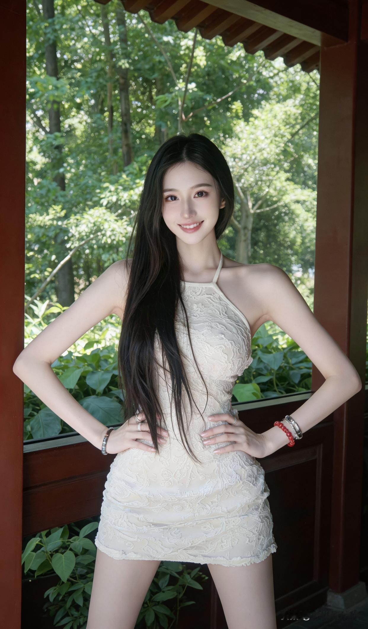 红墙绿树白裙子,标准游客照配置?不,是蚊子的‘自助餐’现场”