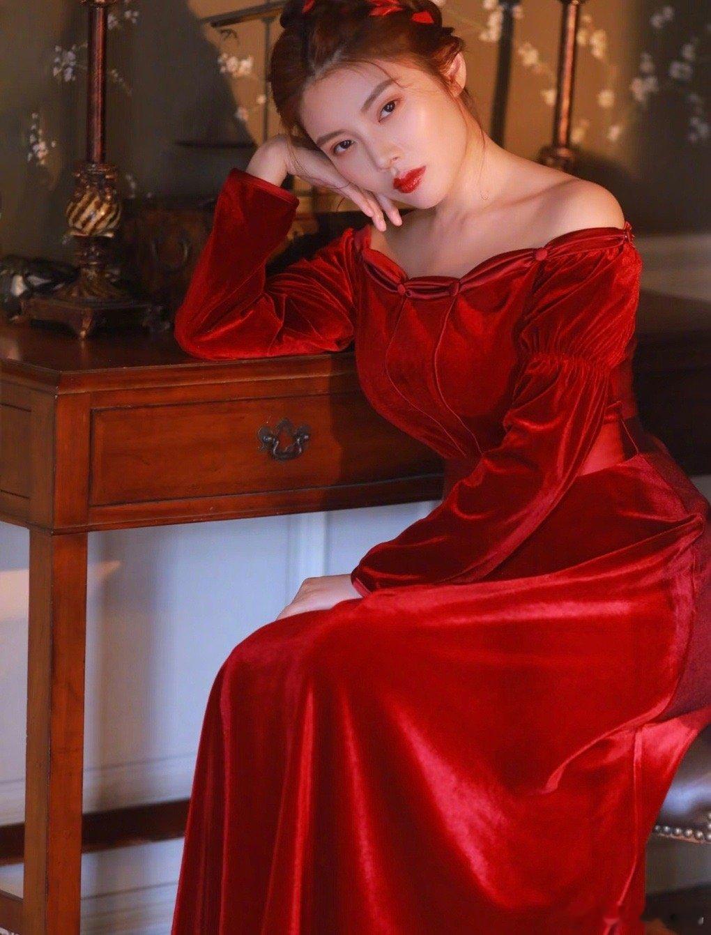 徐冬冬请把红裙焊身上谁懂啊!徐冬冬的红裙基因是刻在骨子里的!《追龙》里一袭红裙惊艳时光,如今丝绒材质加身,复古卷发配红唇,港风韵味直接拉满,媚而不俗的风情真的没人能替代,这红裙必须焊死在身上!