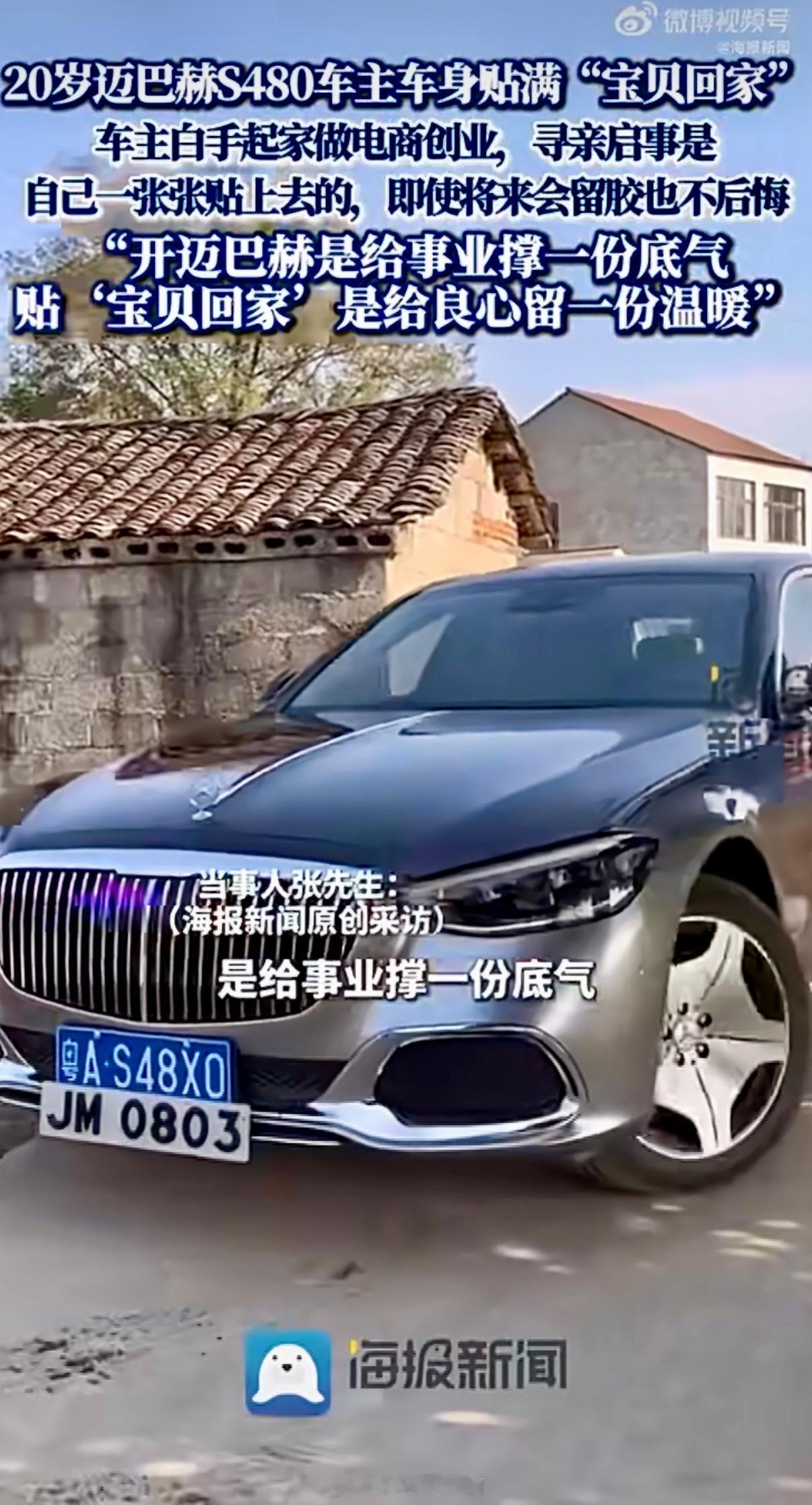为这位车主狠狠点赞!湖南长沙有位20岁的小伙子,靠自己做电商打拼,赚了钱买了辆迈巴赫S480。 但他没拿这车去炫富,反而亲手把整辆车贴满了“宝贝回家”的寻亲广告——一张张都是他自己贴的。哪怕知道以后撕掉会留胶、伤车漆,他也毫不在意。 他说:“我开豪车,是为了给事业撑点底气;但贴这些寻人信息,是因为心里实在过不去——就想帮那些丢了孩子的家庭。”因为他经常全国各地跑业务,就想着:车走到哪儿,希望也能带到哪儿。 说不定哪天,就有一个人因为看到了他车上的信息,让一个走失的孩子重新回到父母身边。这样的年轻人,真的又酷又有温度。20岁迈巴赫车主车上贴满寻亲启事