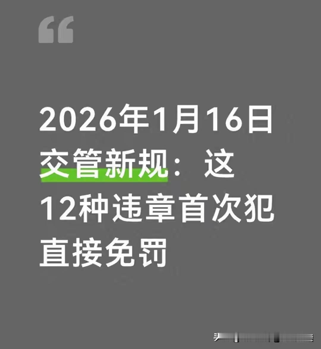 2026年1月16日起,全国正式推行交管“首违免罚”新政。对未系安全带(城市道路)、非严管路临时违停、限速60km/h以下轻微超速等12类高频轻微违章,只要是本自然年内首次发生、未造成后果并及时改正,即可免罚款扣分,只予警告。 新政绝非“法外开恩”,其法源是《行政处罚法》“过罚相当”原则,标志着执法理念从惩罚为主向“教育惩戒结合”的转变。它运用行为心理学,通过给予正面纠错反馈,提升守法自觉。对民众而言,直接减轻了经济负担,并通过线上办理提升了便利度。 但政策有明确边界:严重违法(如酒驾、严重超速)绝不适用;必须同时满足“首次、清单内、无后果、已改正”四条件;“及时改正”需主动完成并留证。专家指出,这是社会治理精细化的体现,其成功依赖于透明执行与公众配合,旨在最终培育更深层的规则敬畏与交通安全文化。违章扣分新规 交通违例罚款 交管规则 超速扣分 超速扣分规则 免除罚违章流程 交规扣分标准