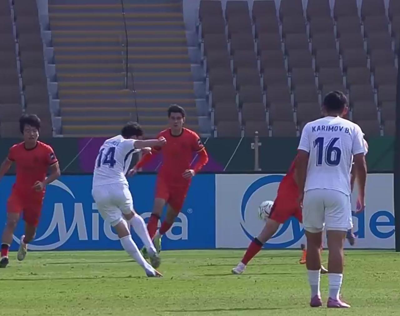 U23亚洲杯1/4决赛上半场结束:中国队0-0乌兹别克斯坦队 北京时间1月17日19:30分,U23亚洲杯1/4决赛中国队迎战乌兹别克斯坦队。上半场结束,双方0-0战平。 主裁判一声哨响比赛开始了,场上穿着红色球衣的是中国队,穿着白色球衣的是乌兹别克斯坦队。中国队从右往左攻。比赛开始乌兹别克斯坦队就向中国队球门发起冲击。好在门将发挥出色化险为夷。第7分钟乌兹别克斯坦队获得角球,远射打在横梁上弹出底线。连续的角球被门将解围。第20分钟乌兹别克斯坦队的远射被门将飞身扑出。第26分钟中国队的传中球被门将没收。第35分钟乌兹别克斯坦队获得角球,外围的远射打偏了。第43分钟乌兹别克斯坦队的远射被门将飞身扑出底线。角球没有形成射门。第45分钟乌兹别克斯坦队的射门打偏了。伤停补时阶段中国队获得前场定位球,上半场结束双方战成0-0。 整个上半场,乌兹别克斯坦获得5次射门,6个角球。其中4次非常有威胁的射门,都被门将李昊飞身扑出。确保球门不失。u23世界杯 亚洲杯 亚洲杯U22