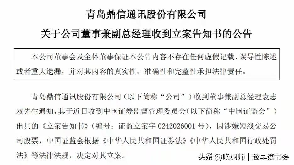 2026年1月17日晚,鼎信通讯公告其董事兼副总经理因涉嫌短线交易被证监会立案。这位高管在2025年11月公司业绩“暴雷”前精准减持61万股,引发市场强烈质疑。 此案发生在监管持续高压的背景下。2025年上半年,证监会作出行政处罚218件,其中信息披露违规占半数以上。截至8月初,年内已有超60家上市公司被立案。 从专业角度看,此案涉及短线交易与潜在的内幕信息利用。公司治理失效是根源,该公司此前已有信披违规记录,且已丢失电网等核心客户。 事件直接冲击公司三万余名中小股东利益,凸显普通投资者面临的信息不对称困境。所幸,投资者保护机制正在完善,2025年“5·15”期间监管部门发布了多项新规,受损投资者可通过法律途径维权。 根治之道在于构建“不敢违、不能违、不想违”的长效机制,通过全链条追责、科技赋能监管和完善公司治理,筑牢资本市场健康发展的基石。鼎信通信 中鼎信电子科技 鼎信网络 鼎信公司 鼎信光纤 鼎信新材料 鼎信 鼎信信用 鼎信实拍 明鼎通讯 鼎信机械 鼎锋电子 鼎信不锈钢 鼎信塔尖 宏鼎通讯