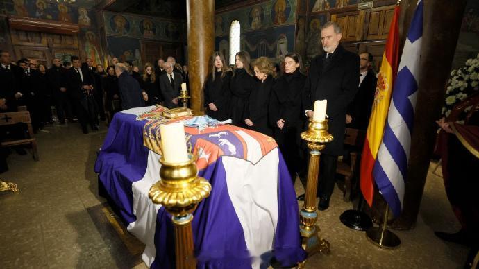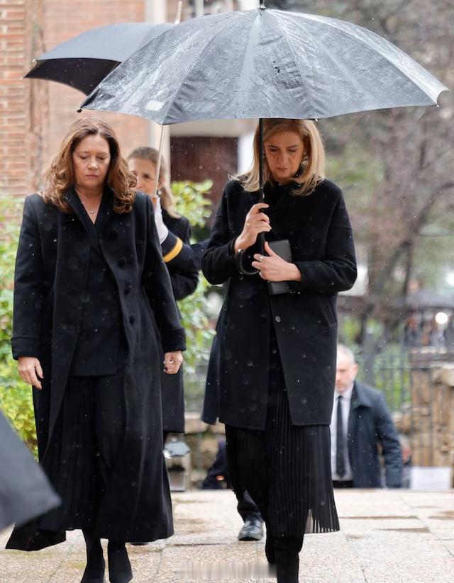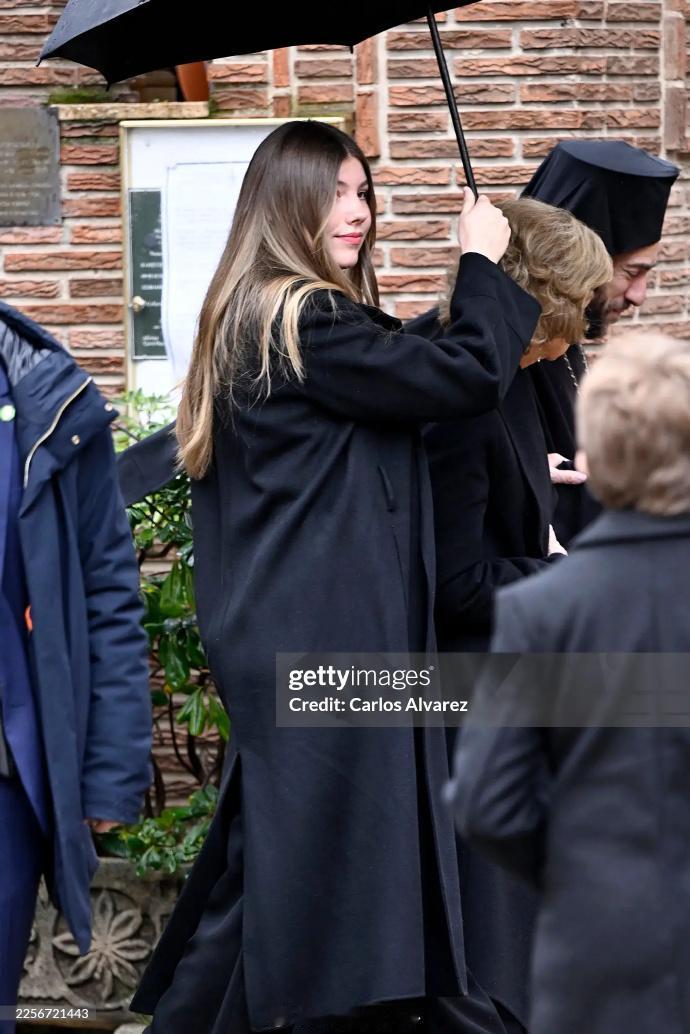 前两天,西班牙老王后索菲亚的亲妹,希腊末代公主艾琳以83岁之龄在西班牙马德里病逝。结合艾琳遗愿和传统,她会在本月19日于雅典举行的葬礼后正式落葬塔托伊的家族墓地 但由于艾琳长年随姐姐在马德里生活,并已入籍成为正儿八经的西班牙人,为了方便亲友和民众向她致意和告别,今天艾琳的灵柩安放在马德里圣安德烈和圣德米特里希腊东正教大教堂,也有一场类似追思会的弥撒举行 可见西班牙王室全员出动,包括已有两三代关系的七大姑八大姨,可见艾琳的人缘。而索菲亚则由两位孙女莱昂诺尔和小索菲亚陪伴在侧