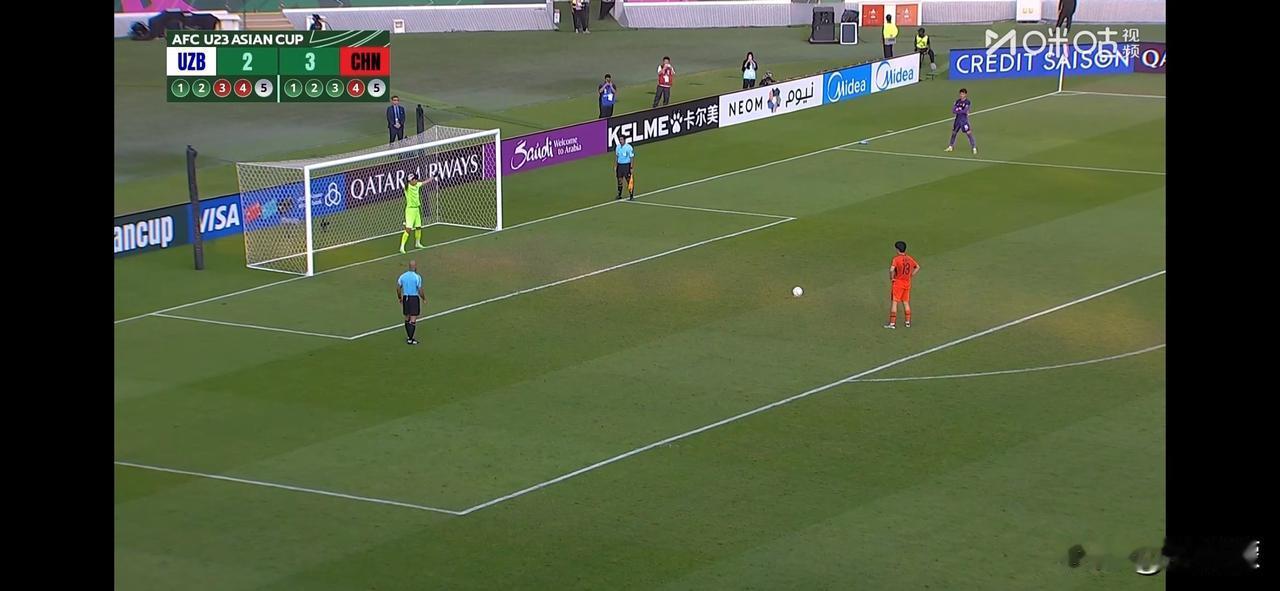 U23亚洲杯国足点球大战,4-2乌兹别克斯坦🇺🇿,时隔8年再次战胜对手,晋级半决赛! 功臣无疑是守门员 李昊,120分钟双方0-0,加时赛还是0-0,双方进入残酷的点球 大战,中国队率先踢发,中国前两个上场的都是后卫球员,踢球力量大。 乌兹别克斯坦第3位踢到上门柱飞出,可惜国足第4出场的球员,踢到左门柱飞出。3-2。 乌兹别克斯坦第四个点球,被李昊 扑出。 中国队第五个点球至关重要,打进就进半决赛,解气!争气!进了!!4-2战胜亚洲劲敌乌兹别克斯坦,挺进U23亚洲杯四强。 亚洲杯 U23足球比赛