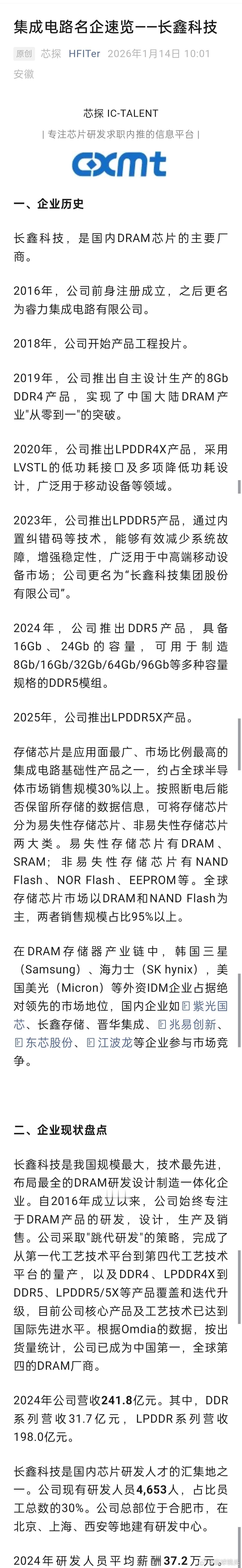 中国芯片迎来最大IPO一个比摩尔、沐曦加起来还大的IPO即将到来!长鑫科技递交科创板IPO申请已于2025年12月30日获受理,申报过程使用了预先审阅机制。它是中国大陆规模最大、技术最先进的DRAM(动态随机存取存储器)芯片研发设计制造一体化企业。