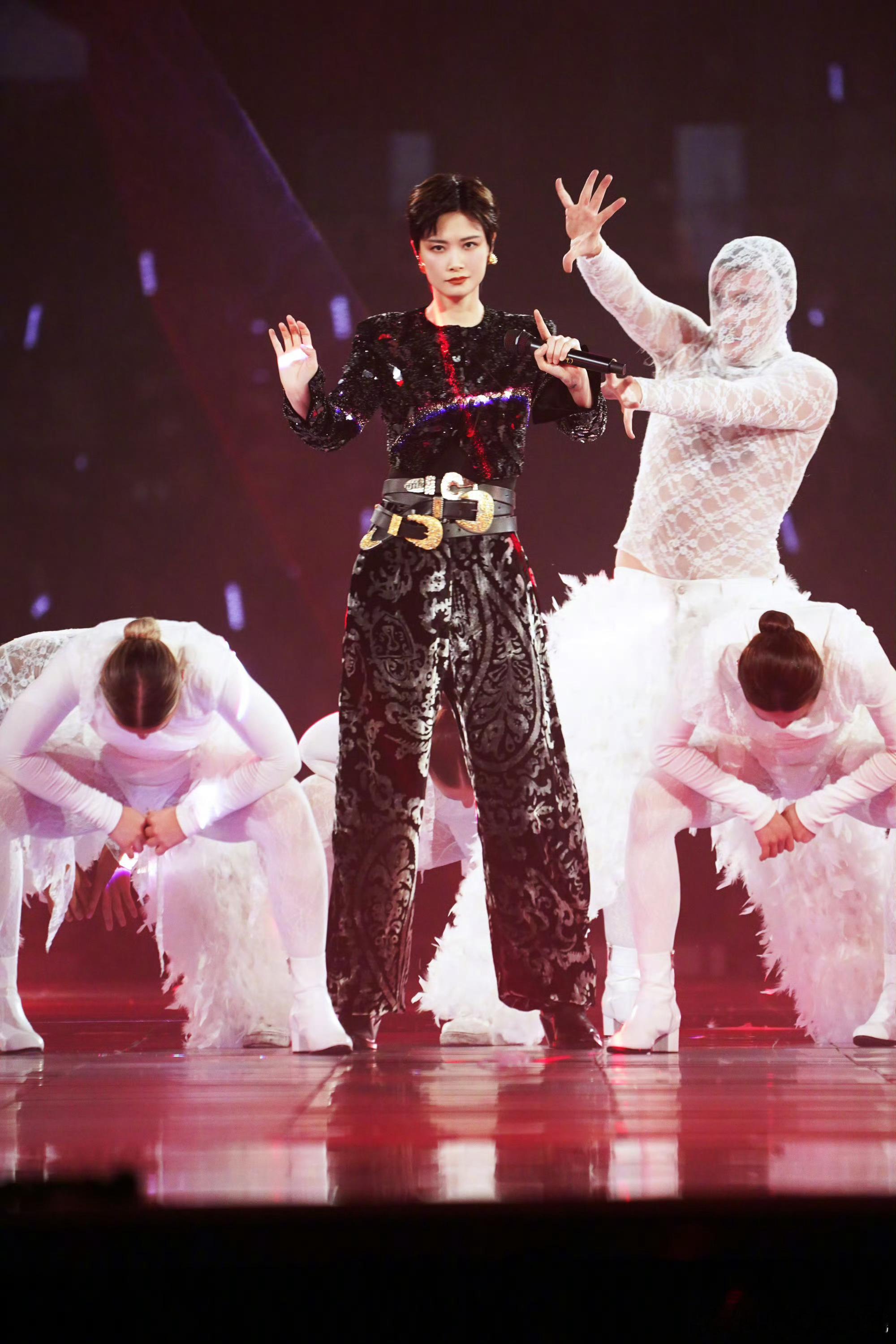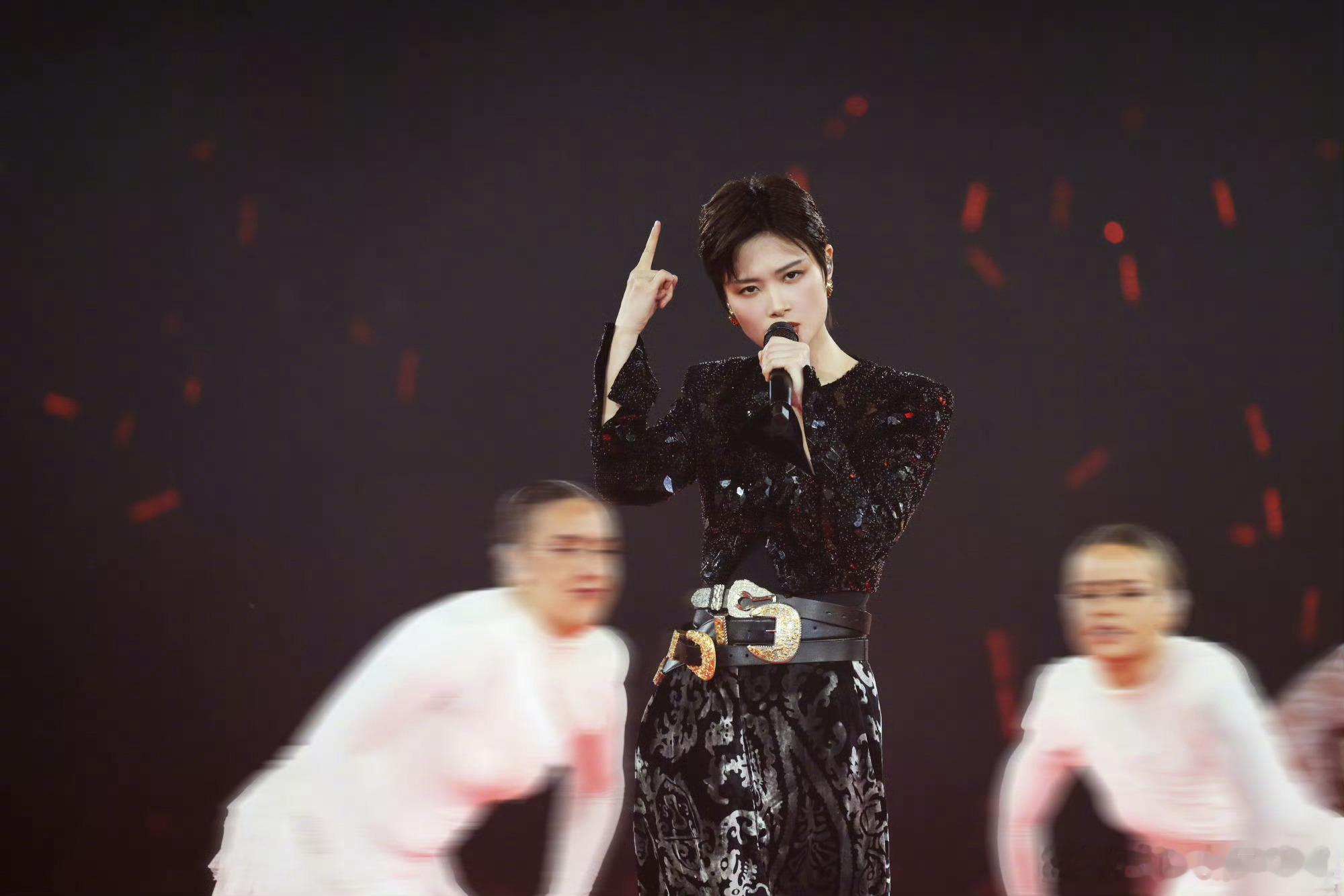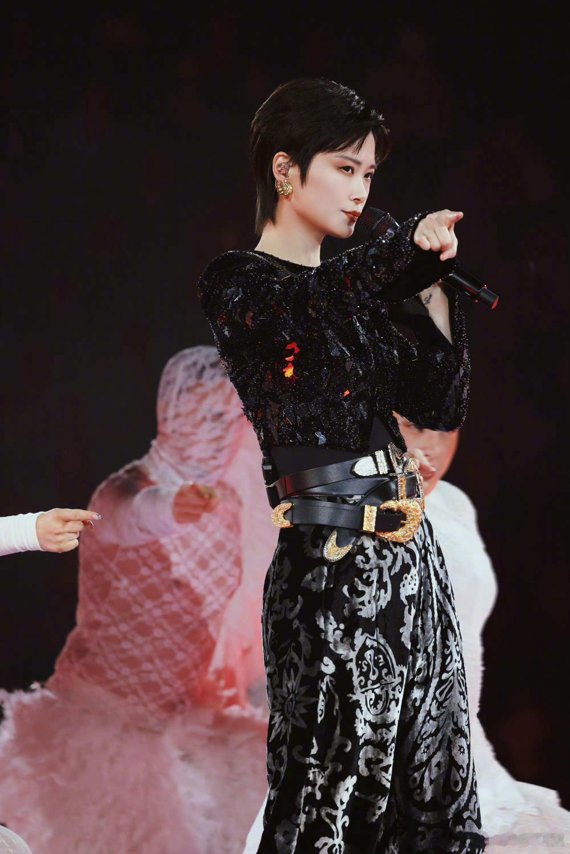 李宇春「2026皇后与梦想巡回演唱会」手工刺绣钉珠的紧身上衣,搭配丝绒烧花锥形裤,三条腰带复古先锋,独属于时尚王者的舞台魅力李宇春三条腰带舞台造型