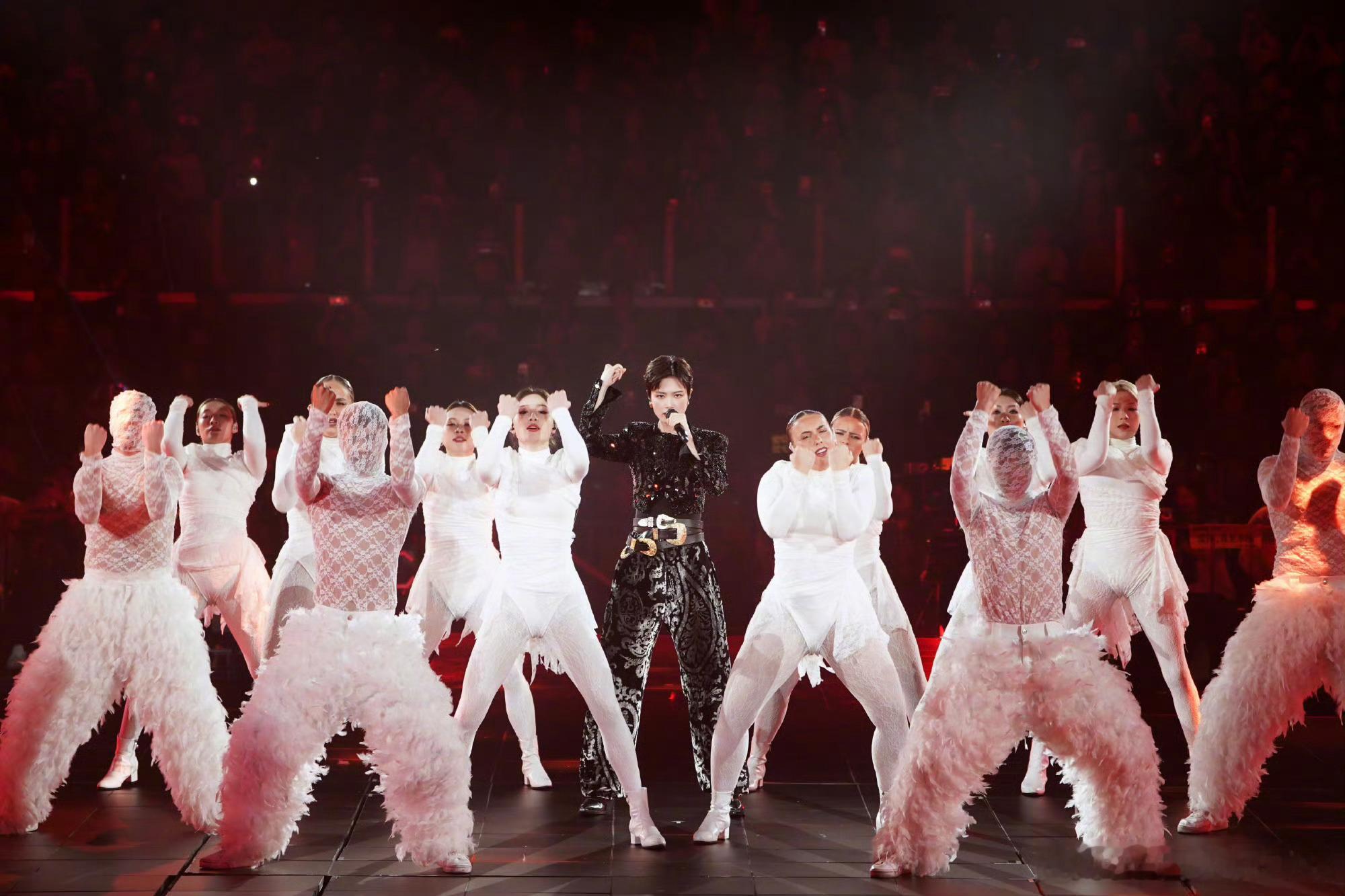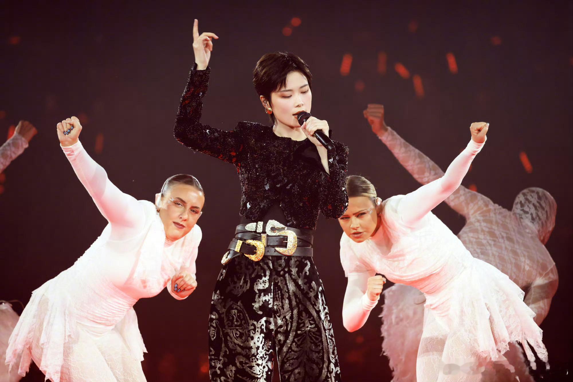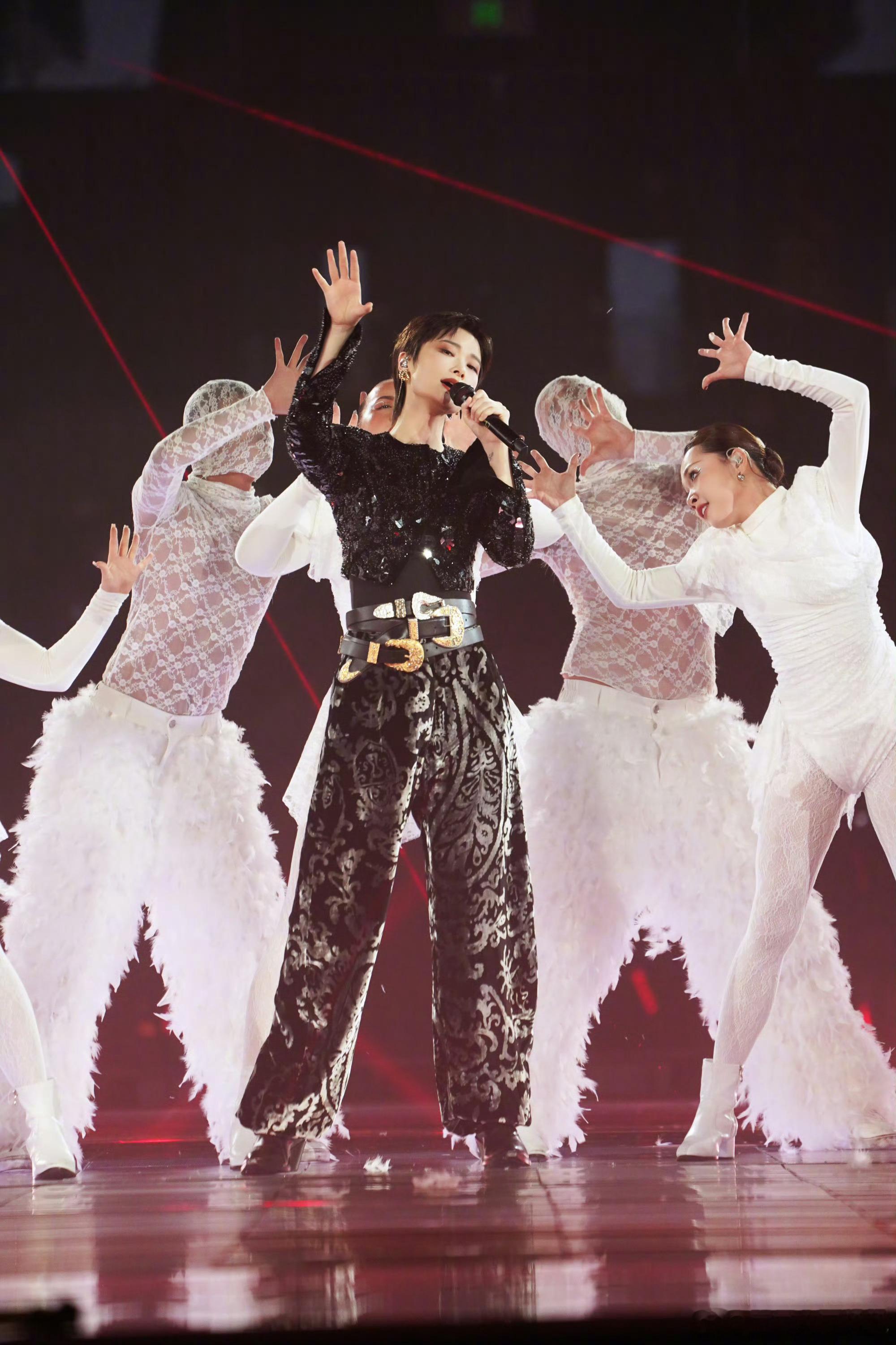 李宇春「2026皇后与梦想巡回演唱会」手工刺绣钉珠的紧身上衣,搭配丝绒烧花锥形裤,三条腰带复古先锋,独属于时尚王者的舞台魅力李宇春三条腰带舞台造型
