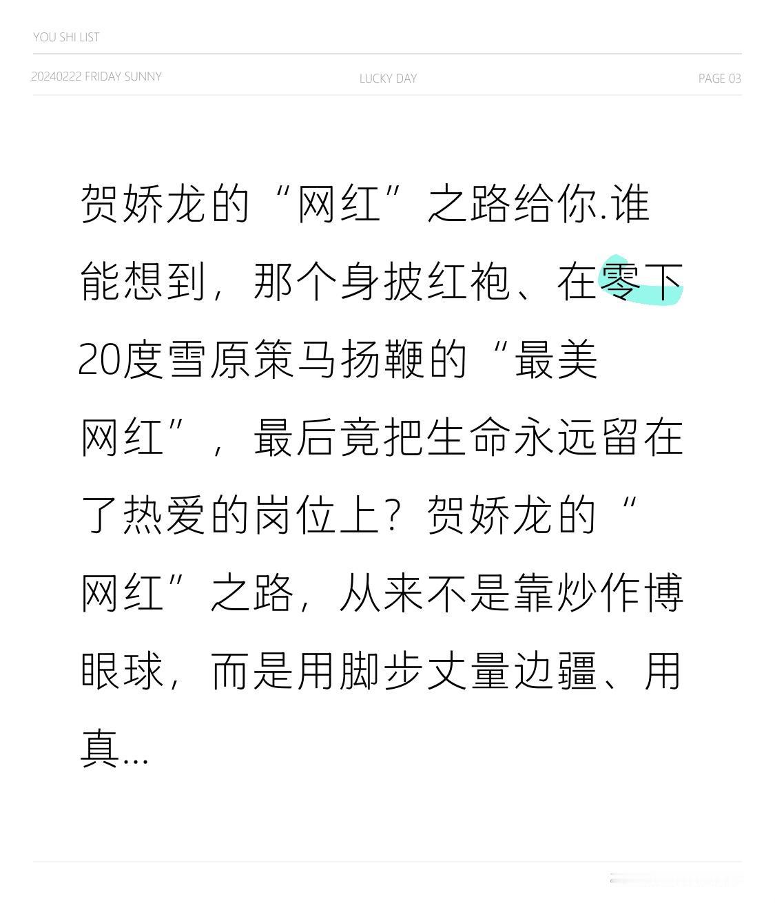 贺娇龙的“网红”之路给你. 谁能想到,那个身披红袍、在零下20度雪原策马扬鞭的“最美网红”,最后竟把生命永远留在了热爱的岗位上?贺娇龙的“网红”之路,从来不是靠炒作博眼球,而是用脚步丈量边疆、用真心助农增收的实干之路,今天就来聊聊这位“马背上的公仆”背后不为人知的故事。 2020年冬天,一条短视频刷爆全网:新疆昭苏的茫茫雪原上,一位身穿红斗篷的女子驾骏马疾驰,身后扬起漫天雪雾,配上“天马故乡”的壮阔背景,6亿次播放让“贺娇龙”这个名字火遍大江南北。有人说她是“靠颜值出圈的网红干部”,可很少有人知道,镜头前飒爽的策马身影,背后藏着多少不为人知的坚持。 彼时还是昭苏县副县长的贺娇龙,其实是个骑马“新手”。为了推广家乡旅游和农产品,她主动扛起直播带货的重任,每天清晨6点半起床直播,9点半结束后立刻赶回单位处理公务,一天工作超10小时成了常态。零下十几度的雪地里,铁马镫冻得刺骨,她的鞋子常常结满冰碴,却笑着说“只要能让老乡们的货卖出去,这点苦不算啥”。 走红后,质疑声也随之而来:“公职人员当网红,不务正业”“直播收入是不是进了自己腰包”。面对争议,贺娇龙没有辩解,而是用行动回应:她给自己定下规矩,不接商业活动、不拿一分钱报酬,所有直播打赏和平台奖励都纳入公益基金,5年累计捐款捐物超1100万元。她的直播间里,没有花哨的营销,只有田间地头的真实场景——和瓜农一起坐在地里吃瓜,帮农户给葡萄“开墩”,在车间里检查产品品质,用最接地气的方式推销新疆好物。 从昭苏县到伊犁州,再到全疆的农产品品牌建设,岗位在变,但她的初心从未动摇。她带领团队跑遍天山南北,从石河子的葡萄园到和田的核桃林,让776个新疆优质产品通过直播走向全国,带动2830人直接就业,1万多户农牧民增收致富。伊犁旅游收入增长25%,滞销的500多吨农产品被抢购一空,农户们感慨“以前种的东西愁卖,现在跟着贺主任,收入翻了好几倍”。 可谁也没想到,这场为民奔波的旅程会突然落幕。2026年1月,贺娇龙在拍摄农产品宣传视频时意外坠马,经全力抢救无效不幸离世,年仅47岁。她的告别仪式上,昭苏的花店被买空,无数网友自发悼念,有人说“她把流量变成了田间地头的及时雨,自己却化作了滋养新疆的泥土”。 回看贺娇龙的“网红”之路,没有惊天动地的壮举,只有日复一日的坚守。她用实际行动告诉我们:真正的流量,从来不是哗众取宠的热度,而是为民办实事的温度;真正的网红,不是昙花一现的明星,而是扎根基层、心系群众的实干者。她的红,红在初心不改,红在使命担当,红在把一生都奉献给了热爱的土地和人民。 如今,马背上的红衣身影虽已远去,但她播下的助农种子正在天山南北生根发芽。向贺娇龙致敬,也向所有扎根基层的实干者致敬!如果你被她的故事打动,不妨点个赞,让更多人记住这位用生命践行初心的“新疆品牌推荐官”。