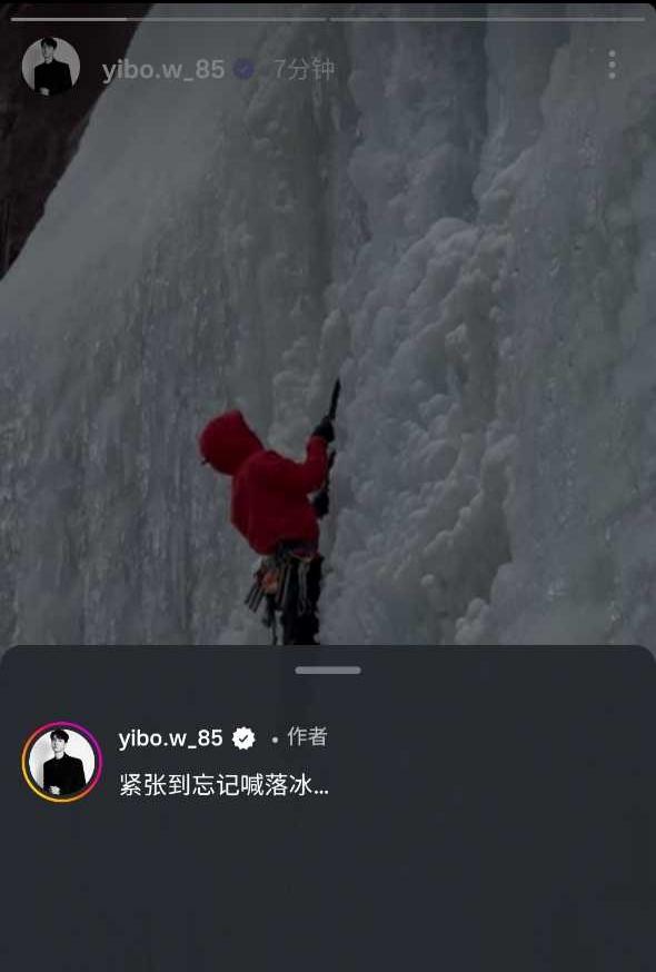 王一博ig更新,发了攀冰视频和照片——冬训结束❄️ yibo:紧张到忘记喊落冰...“王大胆”也会紧张呢[捂脸]。 高高的冰壁之上,一个小小的人儿拿着冰锥凿凿凿……跟像素小人儿一样超级萌超可爱有没有? 这内娱,有人花天酒地醉生梦死,有人却一直坚毅热血让蓬勃的生命力焕发出耀眼的正能量。 以当下中国优秀青年代表的身份身体力行宣传保护冰川多样性,从远赴西藏冰川到日常生活,王一博低调地做着地球上最酷的事情[赞]! 王一博
