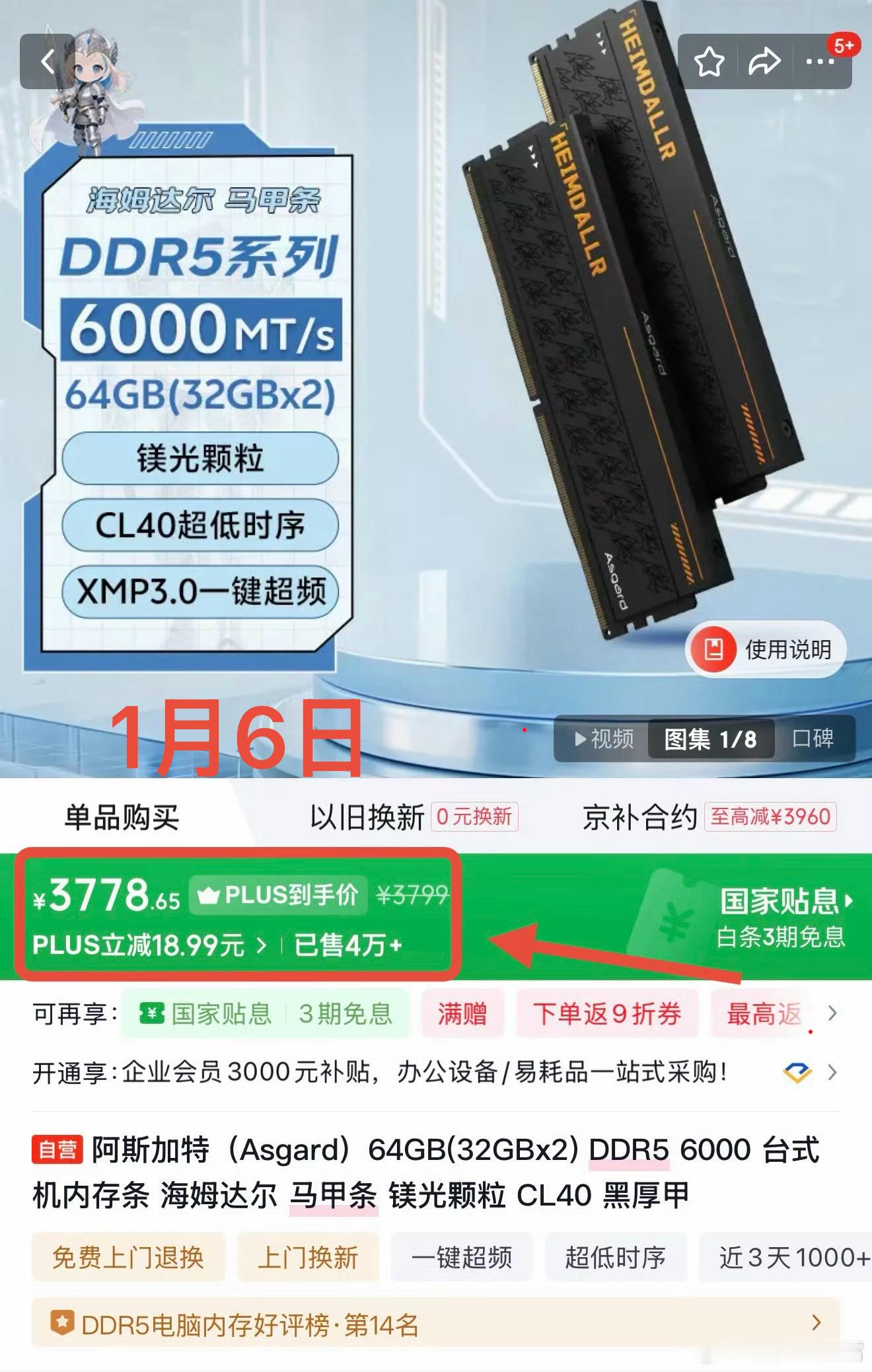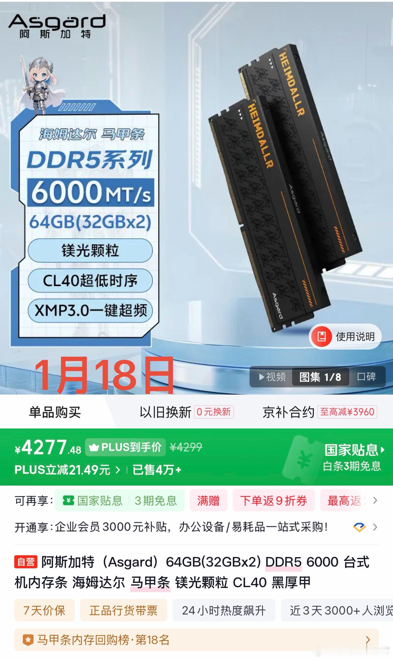 内存涨爆了我有种预感,卖内存的厂商已经开始瞎搞割韭菜了,记得之前我买的内存条吧,给大家理个时间线来看看价格变化。去年11月13日花2400元买的64GB内存条,11月29日涨到3400元、今年1月6日涨到3800元、今天1月18日竟然涨到了4300元,马上又快要涨一倍,你们就说离谱不?