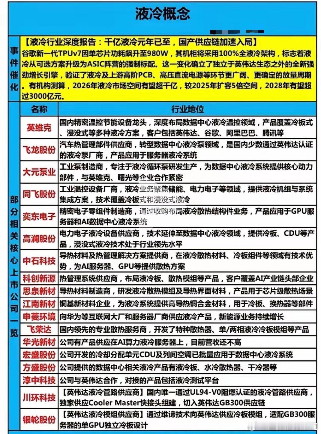 液冷成AI算力隐形冠军,千亿赛道正爆发当市场聚焦GPU时,液冷技术已成为算力突破的关键:2026年AI数据中心渗透率预计达47%,但相关公司估值仍处低位,预期差显著。芯片功耗破1000W后,风冷触及物理极限,液冷从“可选”变“必选”,华为、英伟达 Rubin平台均全面采用。其商业模式更具确定性——无论哪家芯片胜出,高效散热都是刚需,英维克、高澜股份等企业订单充足。核心观察三点:智算中心中标金额与营收占比、单机柜50kW突破及成本下降、PUE政策与技术标准推进。AI算力新格局
