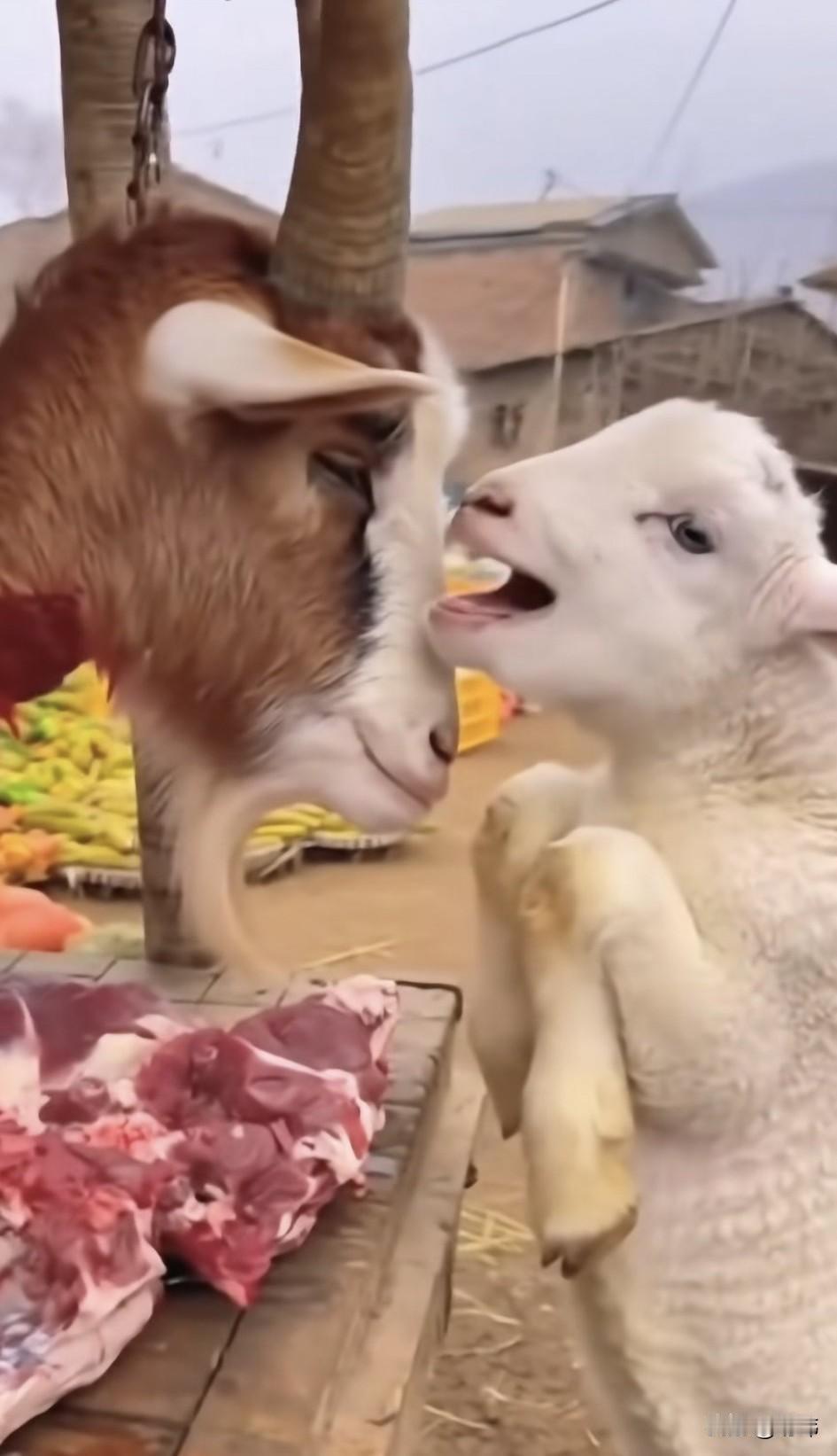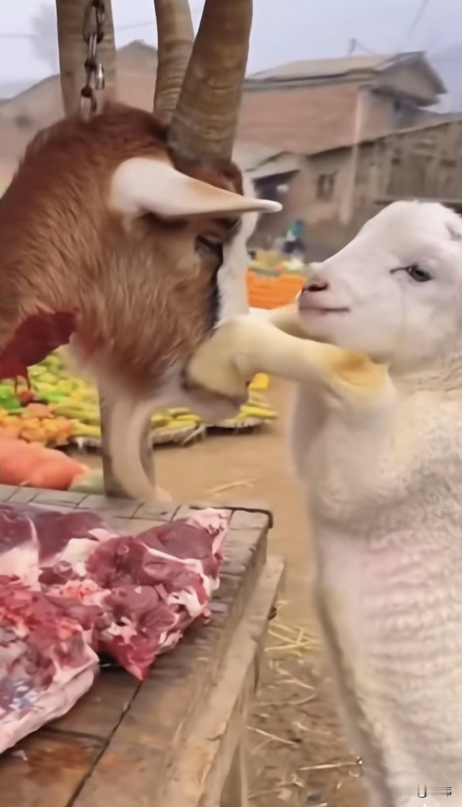 太可怜了!这是多么残忍的一幕,一只可怜的小羊的妈妈被主人卖给了羊肉铺,它的结局可想而知。谁知第二天,主人带着小羊羔去市场售卖的时候。 小羊闻到了妈妈的气味,结果却看到了无比凄惨的一幕,它妈妈的头居然挂在了羊肉铺的摊位上,它拼命的跑过去站起来,用自己的两个蹄子抱住妈妈的头,痛苦的哀嚎哭泣起来,可铁石心肠的主人之间把它拉走然后卖给了别人。 不得不说它的主人真的太狠了,又何必让这么小的羊面对残酷的现实呢?
