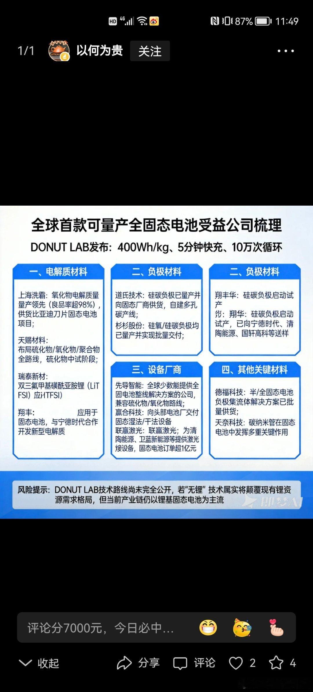 2026年CES展Donut Lab推出全球首款可量产全固态电池,具备400Wh/kg能量密度、5分钟快充、10万次循环、无锂无稀土优势,核心受益公司梳理如下: