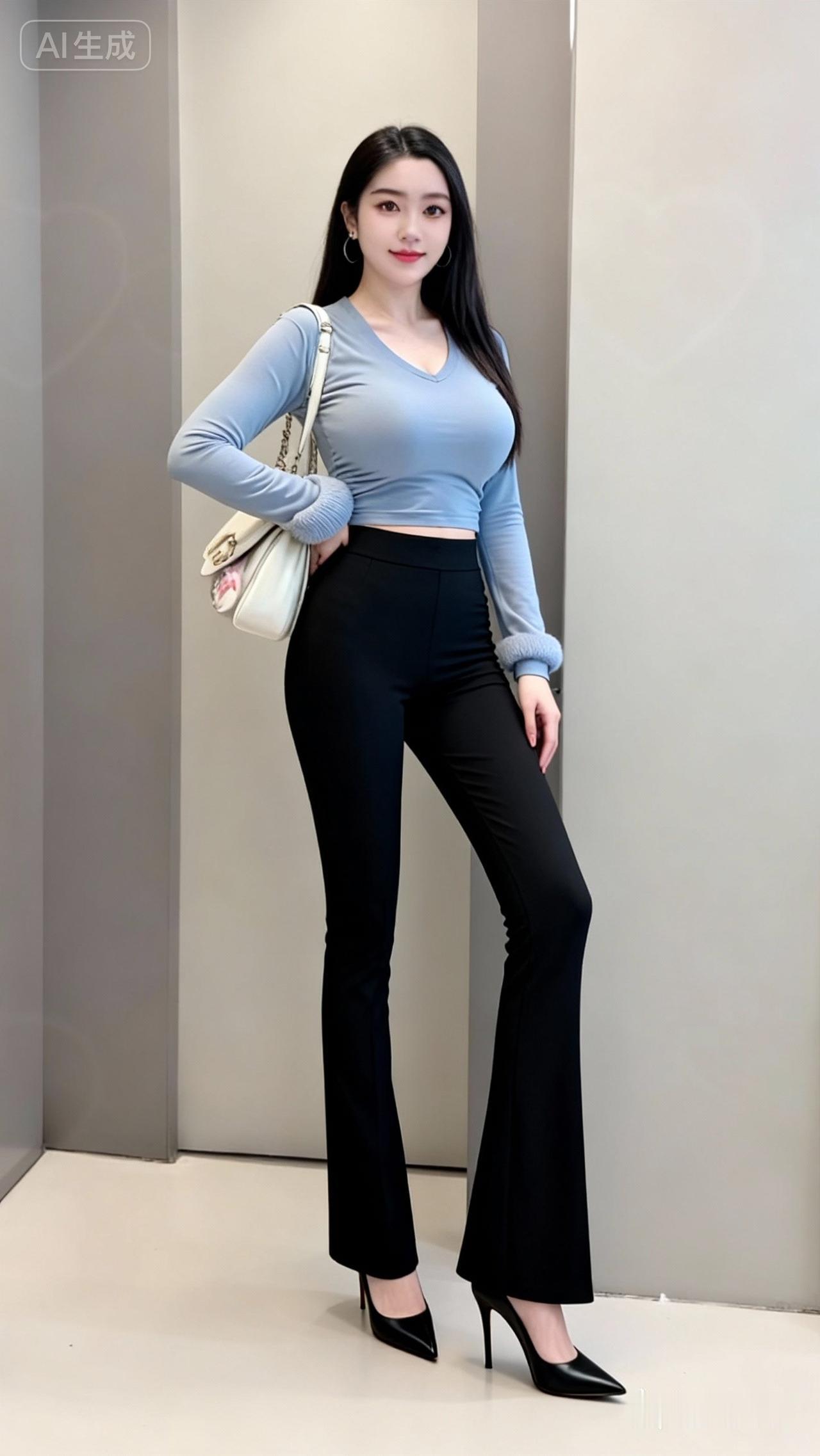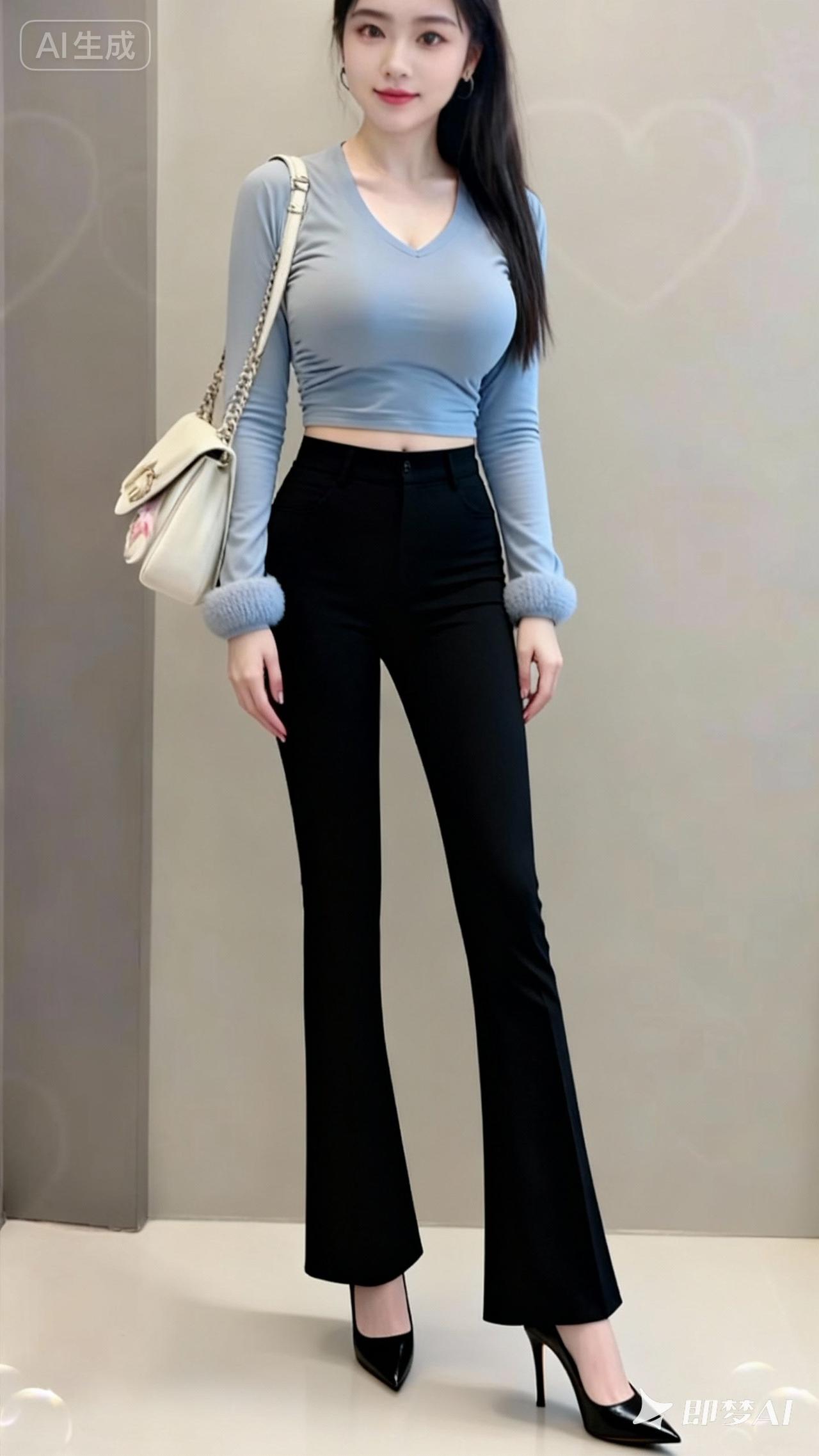 今年冬天的不同一位年轻漂亮的美女,身穿时尚棉麻雪纺衫,戴着耳环、项链和精质手链,