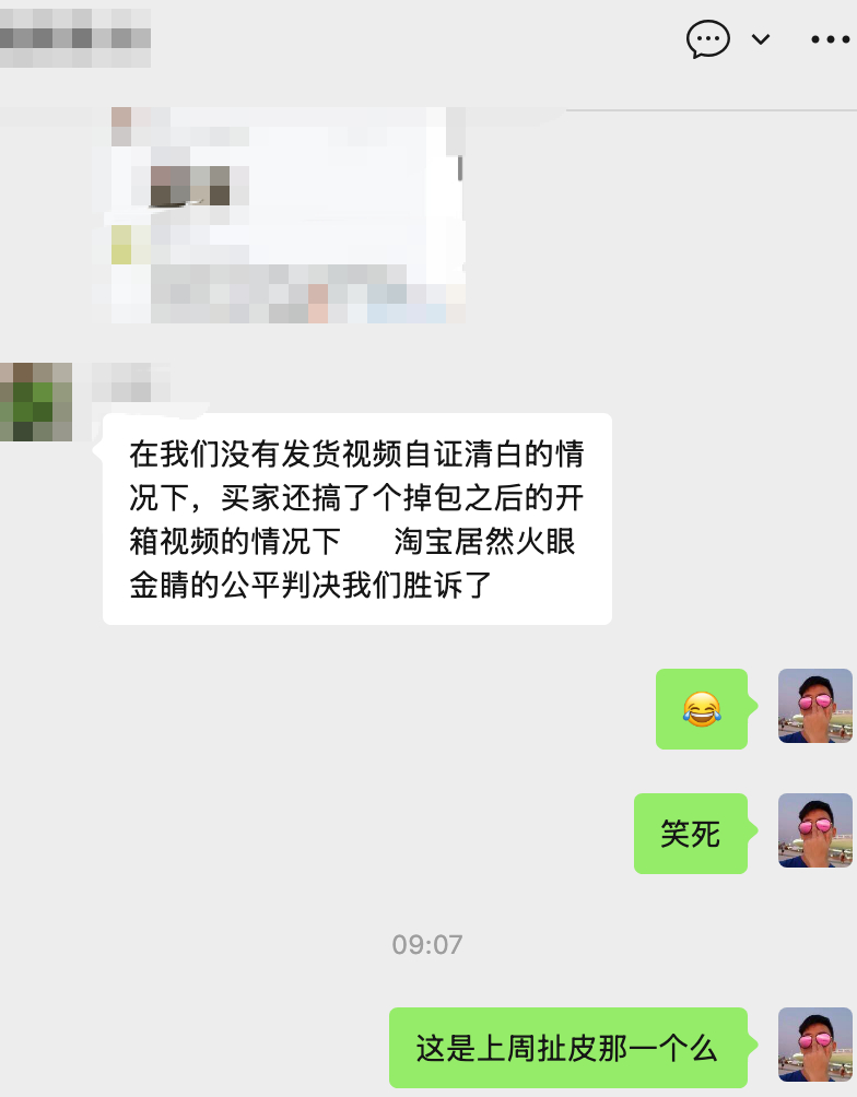 之前不是说大姨子淘宝店有人买的东西(生鲜)拿其他劣质产品来调包仅退款么,当时投诉小二直接挂了电话,搞笑的一幕来了。买家上传了一个开箱视频证明打开就是那样的(就一看是放了几个月发霉了的),卖家(我大姨子)没传发货视频,因为是种植地帮忙发货没有这条件,突然被判赢了,不用仅退款了。这灵活的判决,简直让人哭笑不得。