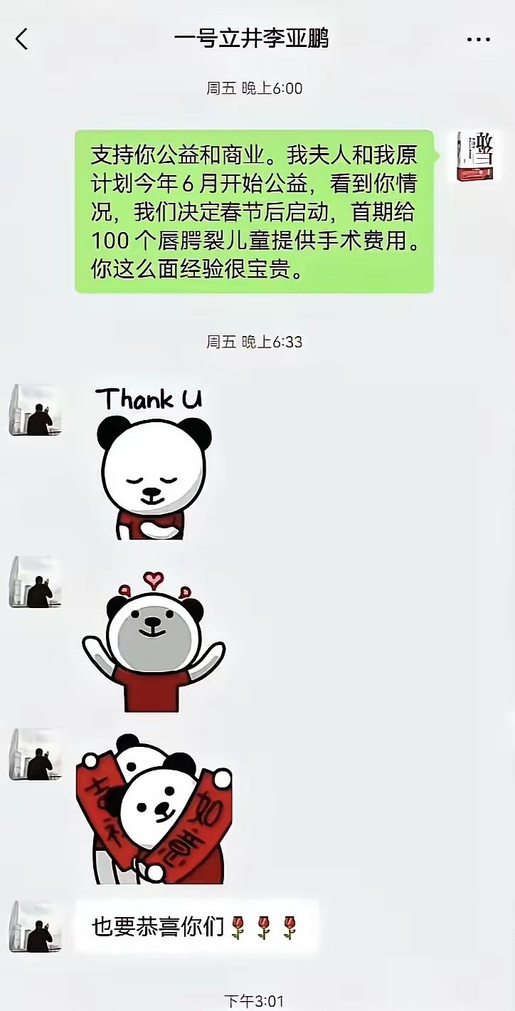 李国庆这次娶对了,张丹红支持他做公益,本来打算6月份启动,突然看到李亚鹏的视频,被感动了! 现在这100万元已经捐给了北京市朝阳区嫣然天使儿童医院。 李国庆再也不用去抢公章了,夫唱妇随多好。 祝李国庆与张丹红百年好合,白头到老!