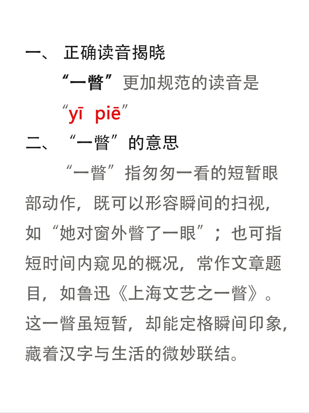 “一瞥”竟然不读yī piě,正确读音是什么?你知道吗?