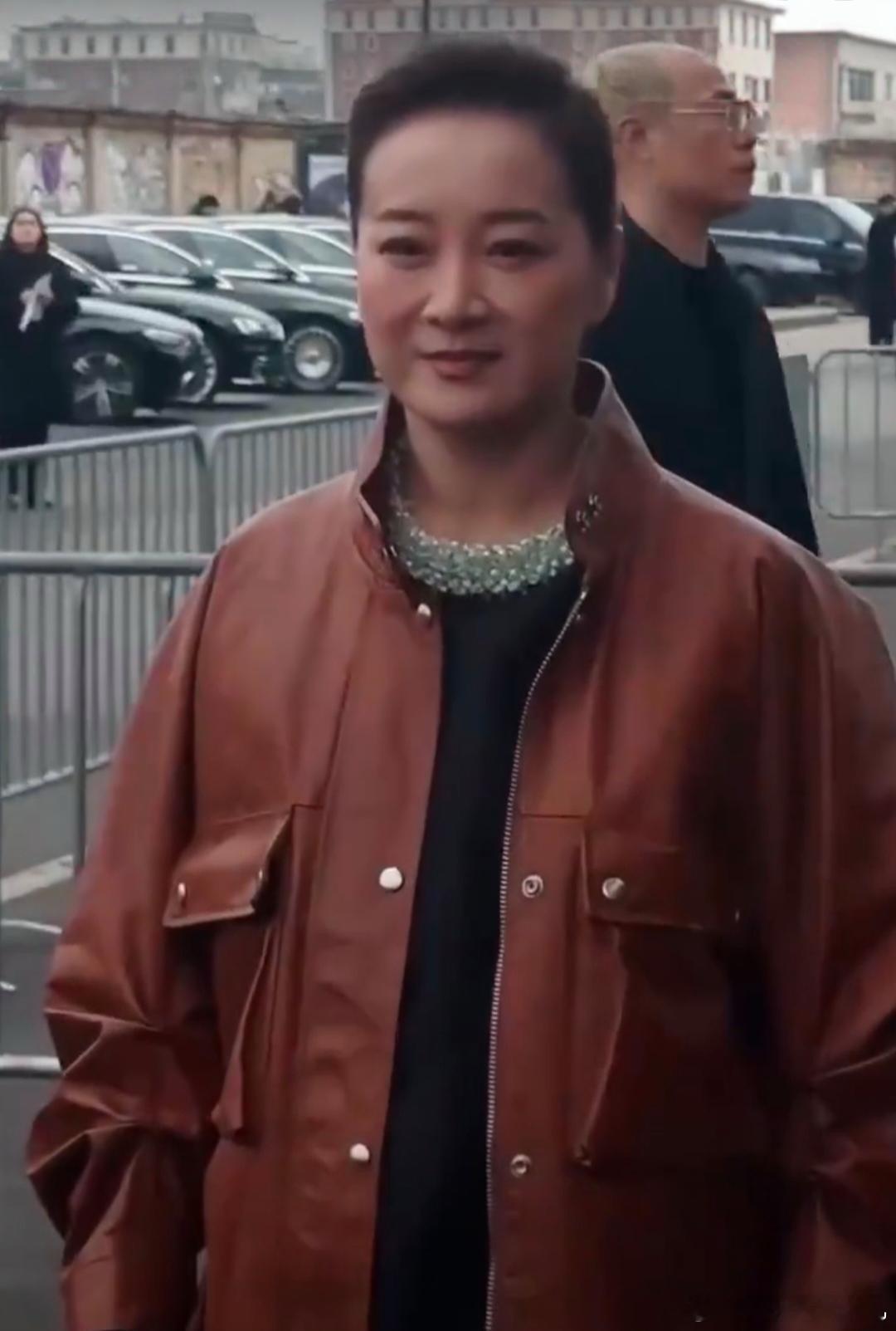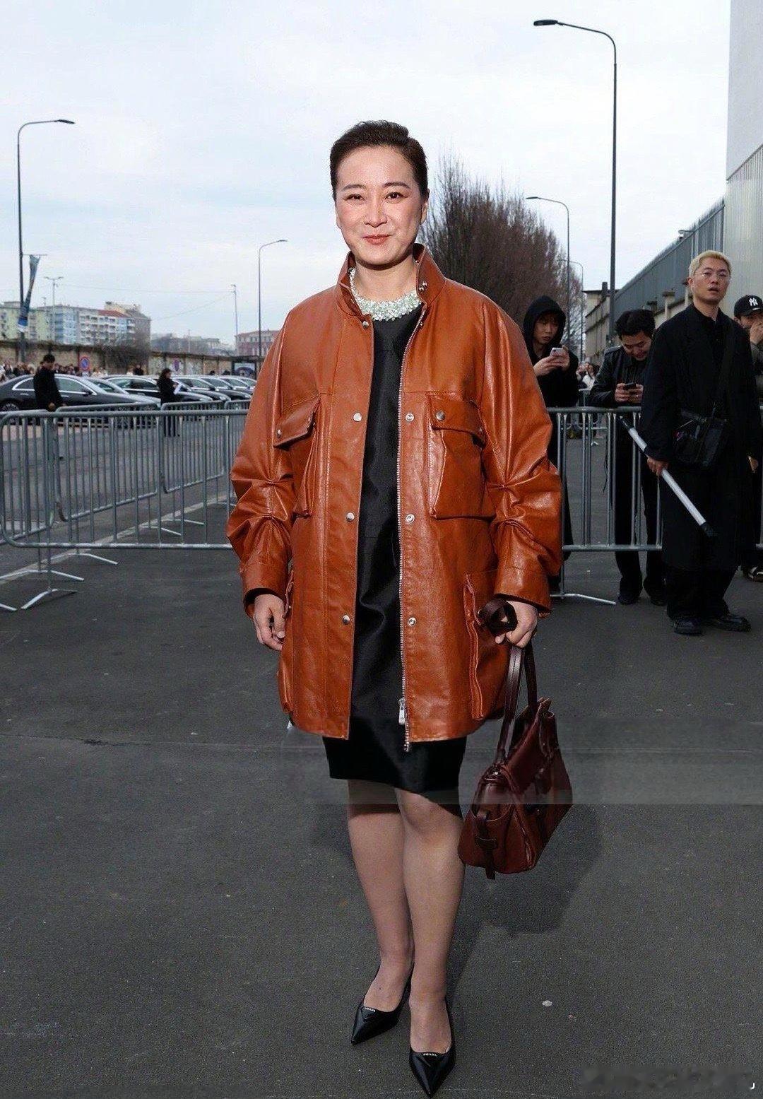 43岁贾玲现身米兰看秀,她梳了大背头,全身都是名牌货,但看起来还是好土气啊!她虽然瘦了好多,但身材还是很一般,整个人好显老。