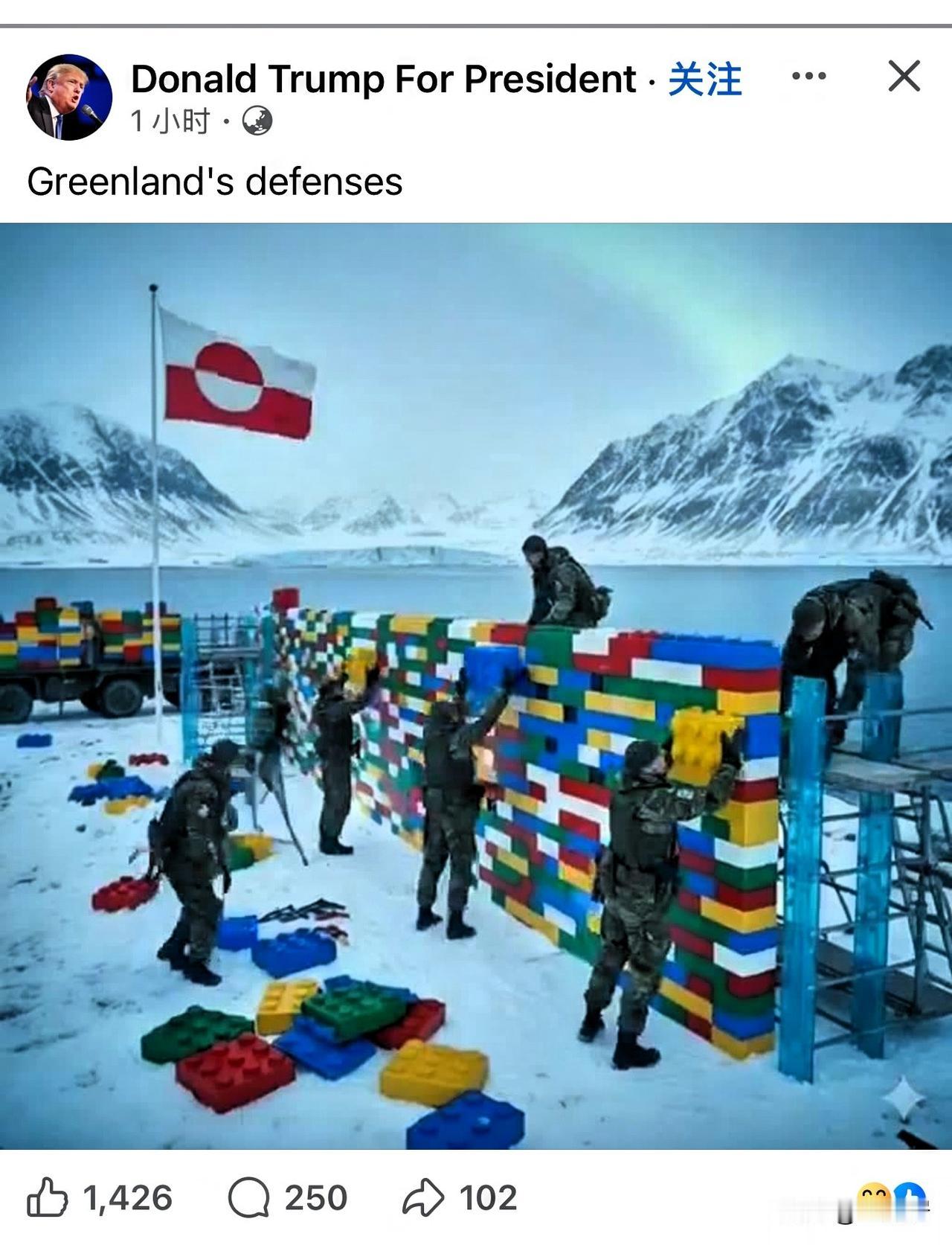 美国川普总统在社媒发了一张搞笑的图片,“格陵兰的防线”。看来,美国一点也看不上格陵兰的防御能力啊。美国占格陵兰岛 格陵兰岛现状 格陵兰地缘战略 格陵兰岛危机 格陵兰地位