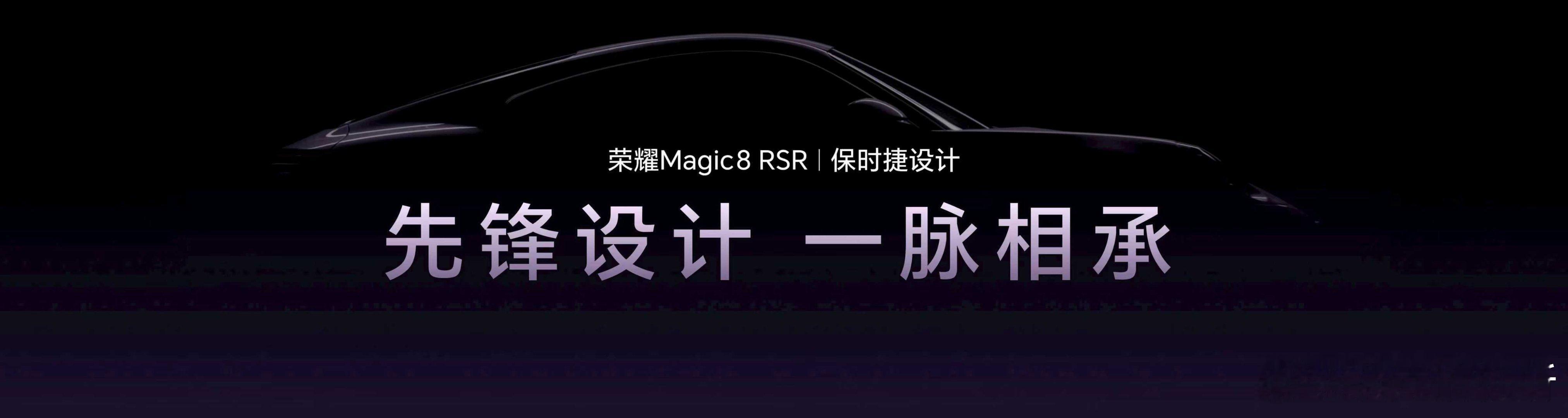 荣耀Magic8 RSR保时捷设计,先锋设计,⼀脉相承!机身背部曲线灵感源于保时捷经典的“流光飞线”车顶曲线,相机模组致敬保时捷跑车的“矩阵大灯”,在手机上还原了超跑设计。荣耀发布会荣耀Magic8 RSR保时捷设计