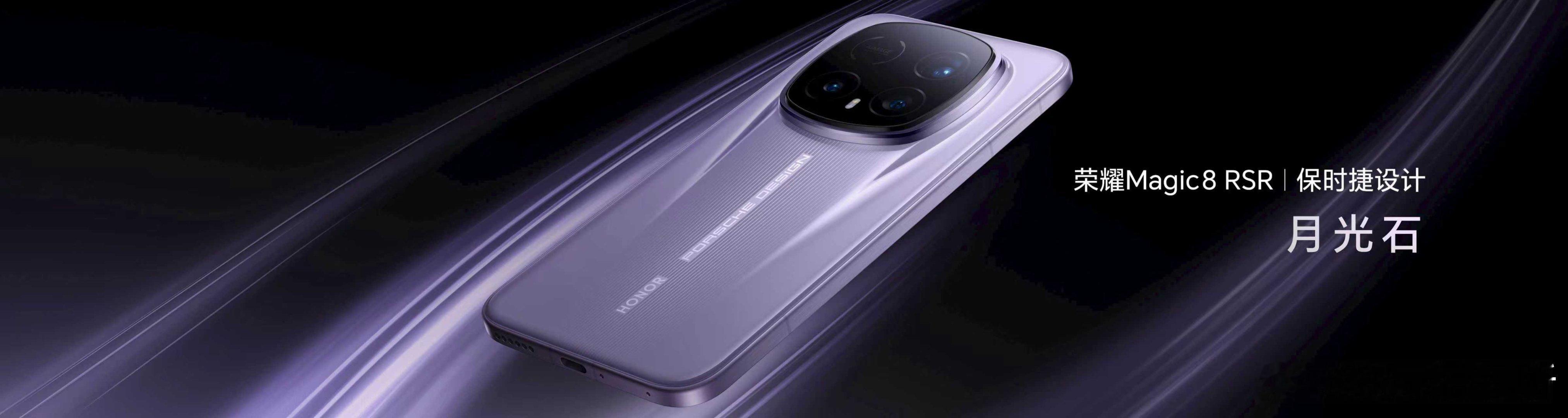荣耀Magic8 RSR保时捷设计,由斯图加特原厂大师亲自操刀调色,复刻保时捷911系列两款原厂经典匠心打造两款极具辨识度的配色——兼具优雅质感的浅紫色调「月光石」,与蕴藏机械美学的「板岩灰」。两款配色均完美复刻保时捷911系列原厂金属漆的细腻光泽,视觉冲击力拉满,令人一眼倾心。此外,产品深度定制保时捷设计专属主题及魔法锁屏,每一处交互细节都融入超跑基因,尽显非凡格调。荣耀发布会荣耀Magic8 RSR保时捷设计