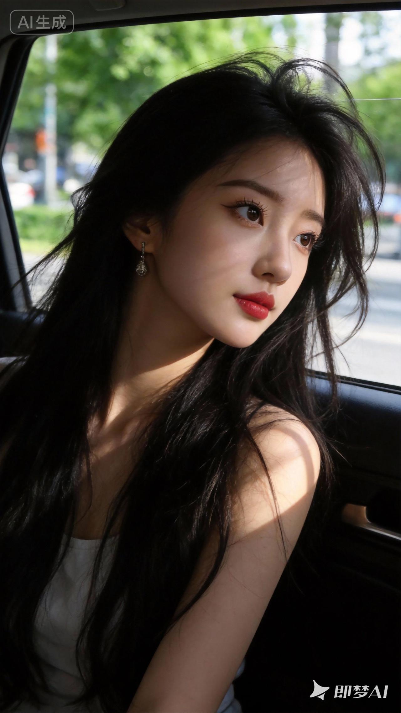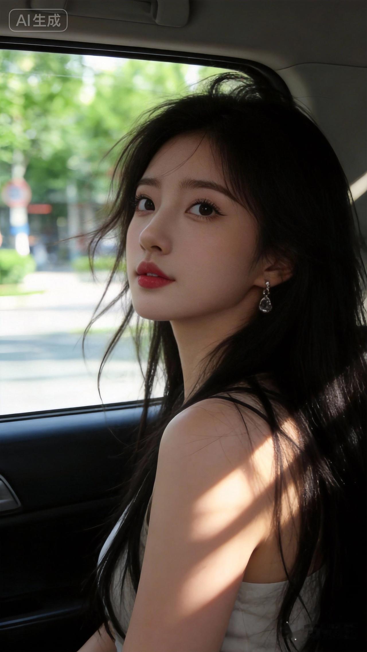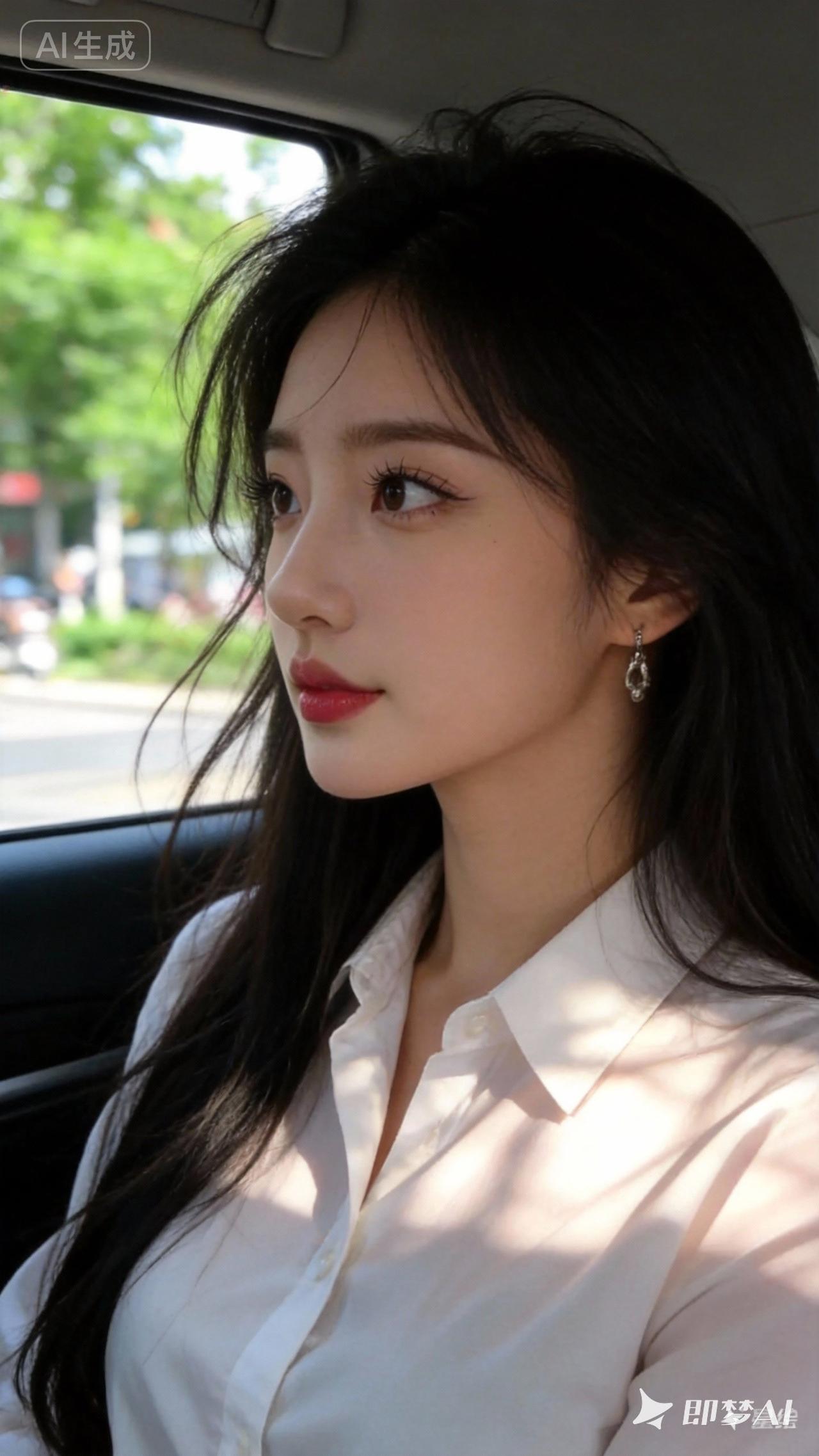 一位妆容精致的20岁美女,鸭蛋脸型,冷白皮肤,五官精致立体,眼睛细长而专注眼角用