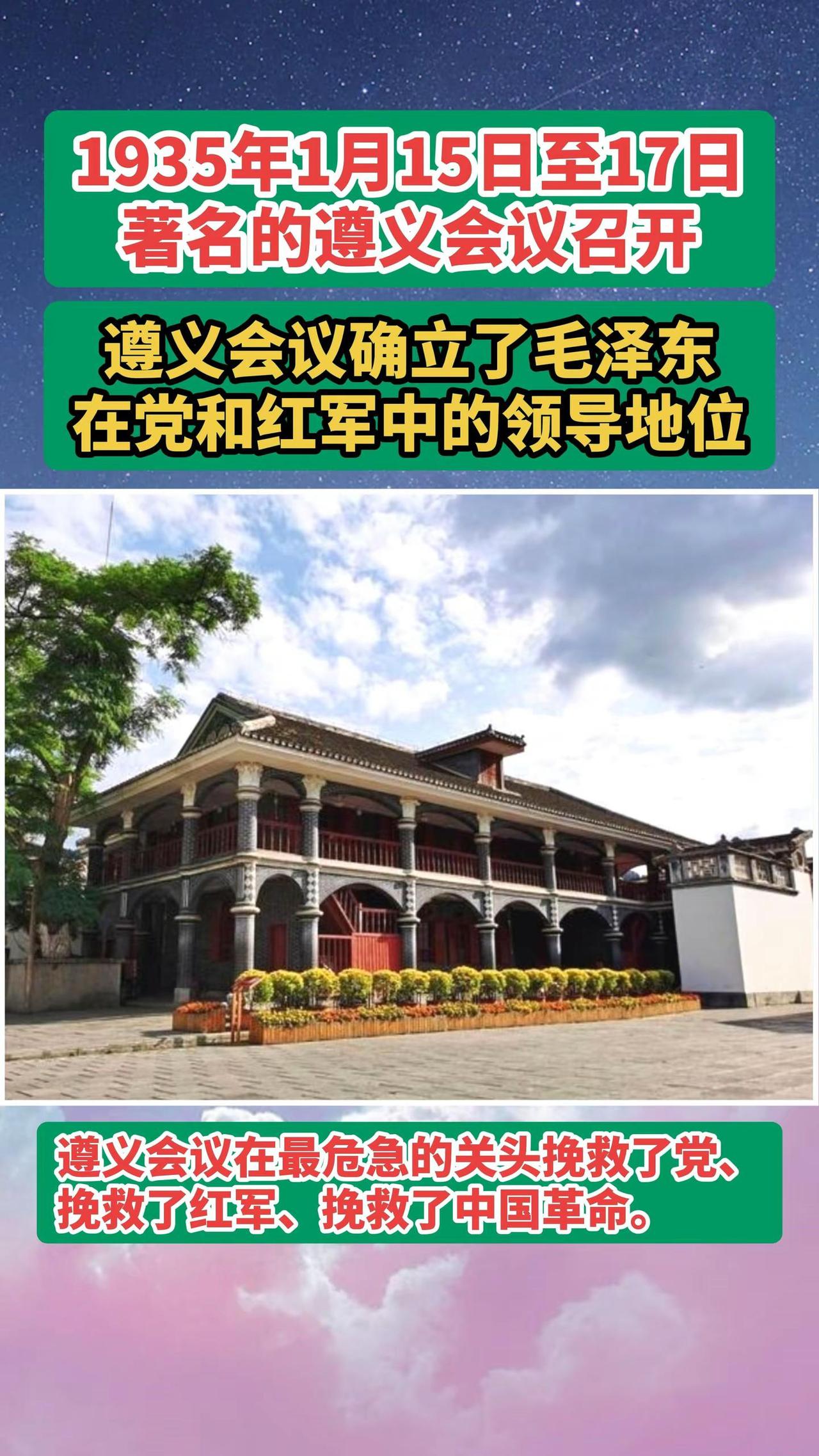 1935年1月15日至17日,著名的遵义会议召开。会议确立了毛泽东在党和红军中的领导地位。遵义会议在最危急的关头挽救了党、挽救了红军、挽救了