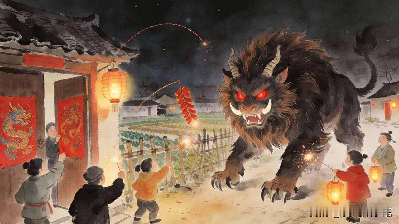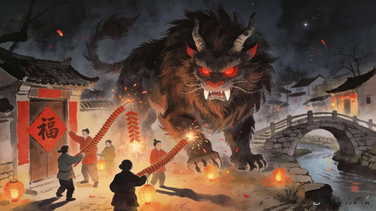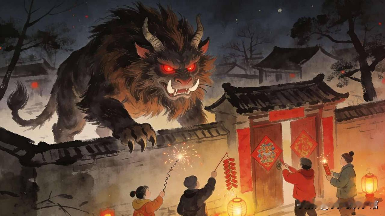 藏着春节的由来 古时候有只叫“年”的猛兽,每到除夕便进村惊扰众人,人们偶然发现它惧怕红色、声响和光亮,便在门前贴红纸、燃爆竹、点灯火驱赶。久而久之,这些做法慢慢成了春节的传统,也有了除夕守岁的习俗,代代流传至今。民间故事 春节民俗传说