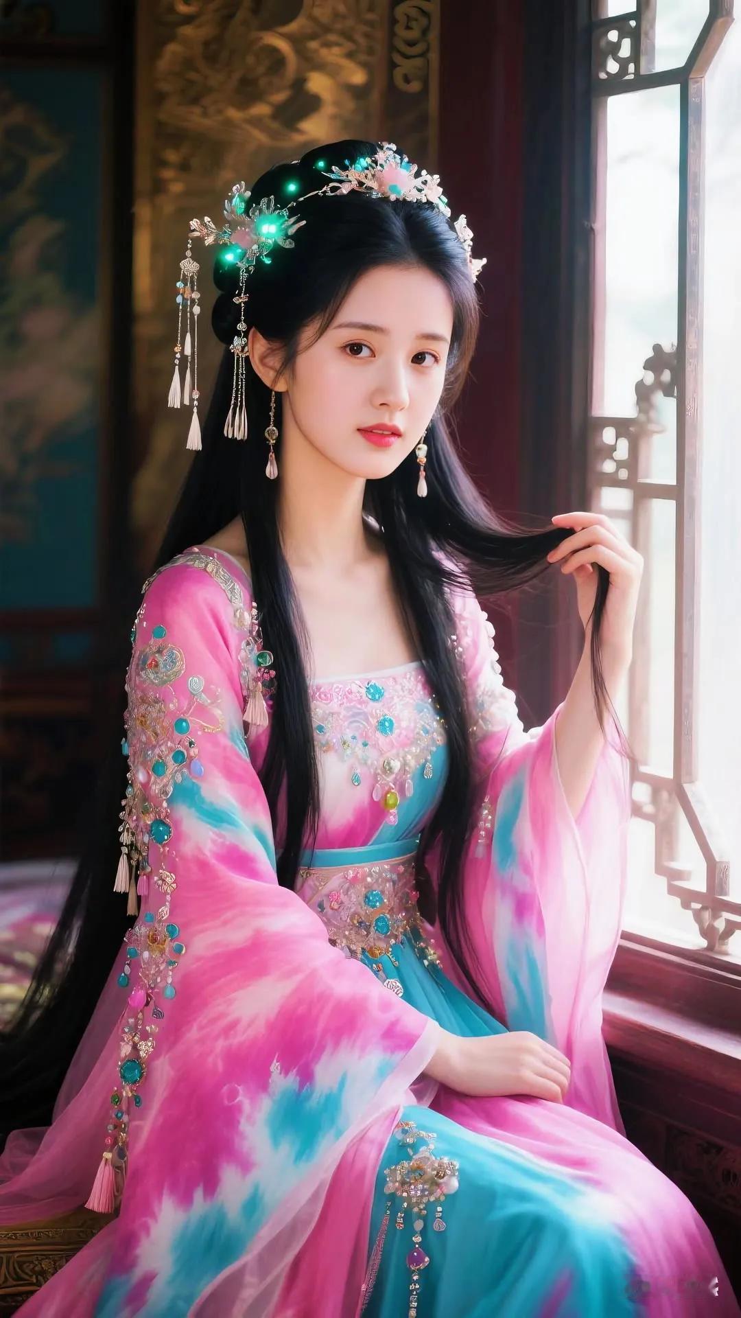 梦幻古风少女,紫色纱裙飘逸,宛如仙子降临。