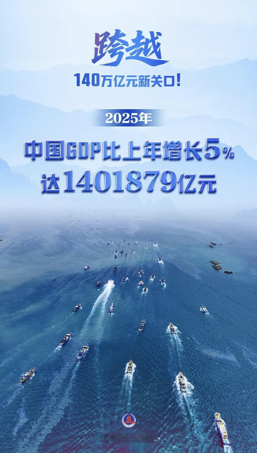 1月20日,昨天,国家统计局宣布2025年中国🇨🇳经济总量141万亿人民币,同比增长5%,这是向国内外交出一份亮丽的成绩单。 2025年面对美国关税战,中国🇨🇳亮明态度,谈,敞开大门,打,奉陪到底。 这就是自信的底气象征,美国关税政策对中国🇨🇳影响微乎其微。 2025年经济增长成绩单就是一个铁证。[赞][赞][赞][赞][赞][赞][赞]