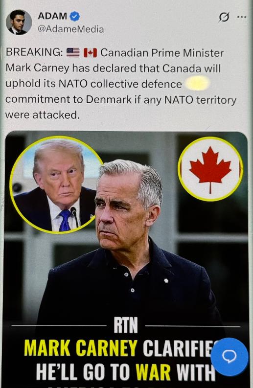 突发:加拿大总理马克·卡尼宣布,若任何北约领土遭到攻击,加拿大将履行对丹麦的北约集体防御承诺。 加拿大总理直接放出狠话:丹麦有事,加拿大必参战!北约集体防御的铁拳,这次直接砸在了格陵兰岛的地缘棋盘上。一边是丹麦拒不让步的强硬,一边是加拿大火线背书的表态,北极冰盖下的资源博弈,正在演变成北约盟友的集体亮剑。特朗普的头像被硬塞进配图里,这出戏,比冰面下的暗流更让人紧张。 这位重返白宫的美国前总统对格陵兰岛的执念早就不是秘密,从2019年私下打听“能不能买”,到2025年公然喊出“必须得到”,现在甚至让白宫官员放话“军事手段始终是选项之一”。这种步步紧逼的姿态,直接把丹麦和格陵兰岛逼到了墙角。 格陵兰岛可不是普通岛屿,它虽说是丹麦的自治领地,但手里攥着北极航道的关键节点,岛上藏着美国急需的43种关键矿产,从稀土到镍矿,全是芯片制造和新能源产业的命脉。 更要命的是,美国早就在这儿扎了根,皮图菲克太空基地里还驻着150名太空军军人,二战时签的防务协定让美军能在这儿自由行动,甚至冷战时还部署过核武器。 特朗普的算盘打得很响,控制了这儿,既卡了北极航道的脖子,又能垄断战略资源,还能给自己的选举造势,简直是一举三得。 丹麦的强硬是被逼出来的。首相弗雷泽里克森直接放话,要是美国敢对北约盟友动武,北约本身都得散架。 1月13号,她还拉着格陵兰岛自治政府总理尼尔森开新闻发布会,俩人死死咬住“绝不售卖”的立场不放,尼尔森更明说“选丹麦、选北约”。 紧接着14号,丹麦外交大臣跟美国副总统会谈,谈来谈去还是“根本性分歧”,没半点松动的意思。 丹麦心里清楚,光靠自己扛不住,必须把北约拉进来,毕竟《北大西洋公约》第五条写得明白,打一个盟友就等于打全体。 加拿大这会儿站出来表态,就是给丹麦递上最硬的底气。马克·卡尼说“丹麦有事必参战”,这话不是空喊口号。加拿大本身就是北极国家,跟格陵兰岛隔海相望,北极航道的安全、冰盖下的资源,都跟它的利益绑在一起。 而且加拿大刚宣布要在格陵兰岛首府努克开领事馆,外长阿南德很快就要去揭幕,明着是建外交据点,实则是强化对这片区域的影响力。这种“火线背书”不只是给丹麦撑场面,更是给北约盟友看,让大家知道有人敢跟美国的霸权硬顶。 北约盟友们也没闲着,只是动作看得人有点复杂。法国派了15名山地部队士兵,德国来了13个侦察兵,英国、挪威、芬兰这些国家要么派一两个人,要么只派联络官。 欧洲媒体都看得明白,这点兵力根本挡不住美国,就是摆个姿态,告诉特朗普“我们盯着这事儿呢”。 法国总统马克龙还特意警告,侵犯格陵兰岛主权会引发“前所未有的连锁后果”,这话明着是施压美国,暗地里也是给盟友们打气。 最尴尬的其实是北约本身。这个靠“集体防御”立起来的联盟,现在要面对“老大欺负小弟”的局面。美国是北约的主导者,丹麦是成员国,格陵兰岛算丹麦领土,按规矩该受第五条保护。 可要是美国真动硬的,其他盟友帮不帮?帮的话等于跟美国翻脸,不帮的话北约就成了笑话。俄罗斯驻丹麦大使都看不过去,直接批评丹麦把北约拉进北极是“搞对抗”,这话虽然有挑拨的意思,但也点破了北约的两难处境。 普通美国人其实也不买账。民调显示,只有17%的人支持接管格陵兰岛,71%的人觉得动武是“坏主意”,还有三分之二的人担心这事儿会搞垮北约。 连美国自己人都清楚,用霸权抢盟友的地盘,是把“殖民逻辑”摆上台面,根本站不住脚。联合国的专家们更直接,说这种企图违反国际法,会砸了国际秩序的根基。 现在的格陵兰岛,表面上是丹麦和美国的对峙,实际上是北极资源蛋糕的争夺,更是北约内部规则的较量。 加拿大的狠话、欧洲国家的象征性派兵、丹麦的死扛,都是在给特朗普的野心踩刹车。可特朗普至今还嘴硬,说要格陵兰岛是为了“国家安全”,谁也猜不准他下一步会不会真的突破底线。 这出戏比冰面下的暗流还让人揪心。毕竟北极的冰在慢慢化,但北约的裂痕要是真裂开了,可不是冻上就能修复的。特朗普的头像被塞进配图,与其说是蹭热度,不如说是给这场闹剧钉上一个“霸权警示灯”——再这么折腾下去,别说北极的资源,整个北约的架子都可能散掉。 官方信源及发布时间:江郡杂谈《面对美国武力夺取威胁,加拿大总理:将履行北约义务保卫格陵兰岛》,发布时间2026年1月19日12时44分
