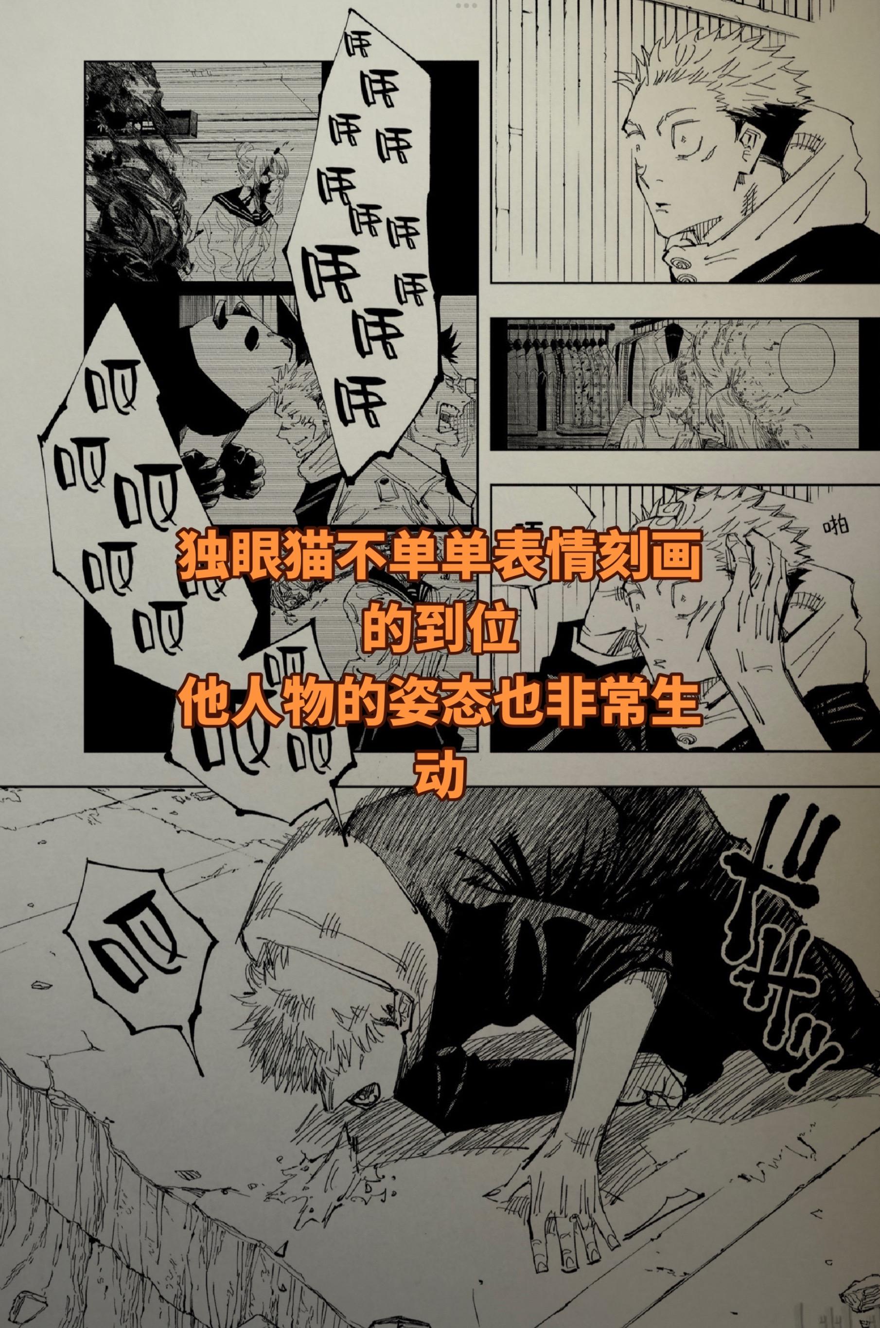 《咒术回战》独眼猫到底会不会画画。格斗漫画难点除了分镜就是造型能力