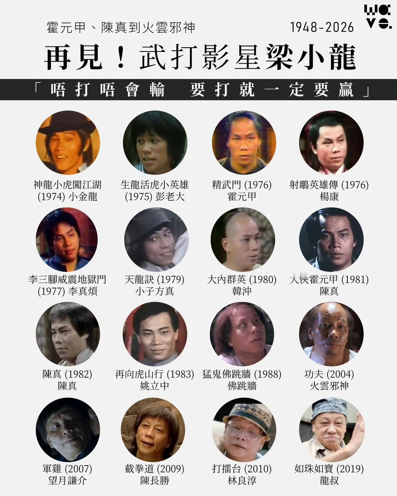 回顾梁小龙先生的经典作品及角色,缅怀一代武打巨星梁小龙。 从1974年的初出茅庐,到1981年的红极一时,再到2003年的事业第二春,直至2026年初与世长辞前仍活跃于荧幕之上,梁小龙在演艺圈浮浮沉沉60余年,为观众留下了无数经典形象。 梁小龙