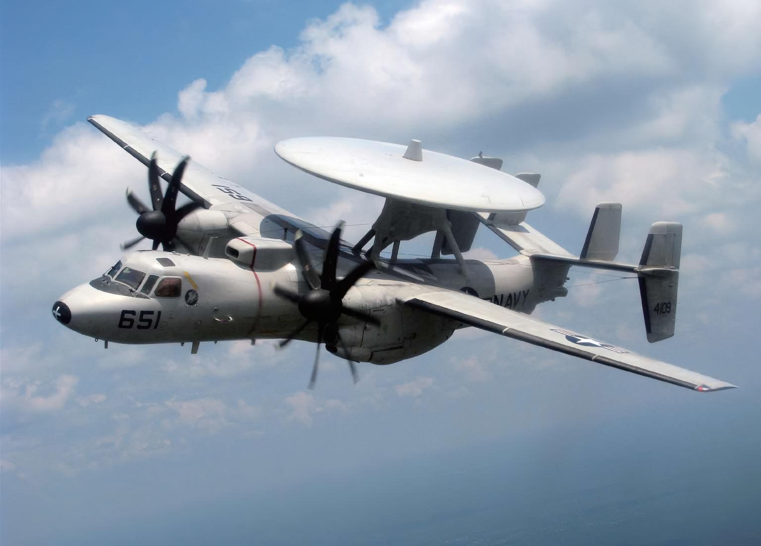 每天认识一件兵器 E-2“鹰眼”预警机E-2“鹰眼”(Hawkeye)预警机是美国诺斯罗普·格鲁曼公司研制的舰载预警机,1964年1月开始服役。E-2预警机是美国海军目前唯一使用的舰载预警机,也是全世界产量最大、使用国家最多的预警机。20世纪50年代,“福莱斯特”级航空母舰陆续进入美国海军服役,该舰能操作更大型的舰载机,因此美国海军开始规划功能更强大的新一代舰载空中管制预警机,整合当时尚在建构的海军战术资料系统(NTDS),这就是E-2系列预警机的由来。E-2首架原型机于1960年推出,同年10月21日首次试飞。第一架量产型号为E-2A ,1961年4月19日首次试飞, 1964年1月19日交付美国海军,开始取代E-1成为美国海军制式舰载预警机。E-2预警机采用高单翼,半硬壳结构设计,垂直安定面共有4片,其中最靠外侧的两面延伸的水平安定面的下方。两边机翼上各有一具涡轮螺旋桨发动机,驱动4片或8片桨叶的螺旋桨。E-2预警机在外观上最大的特征就是位于机背的圆形雷达罩,雷达罩的气动构造经过特殊设计,在飞行时可以产生升力,借此减少因装设雷达而制造的空气阻力。与水面船舰的雷达相较,E-2预警机不受地形与地平线造成的搜索范围限制,而居高临下的搜索方式使得任何空中的敌机或导弹都无所遁形。E-2预警机可在离航空母舰数百千米外进行探测预警作业,并指挥提供防空护卫的战斗机拦截敌方飞行目标。此外,E-2预警机配备有数据链,可将资料传输给整个战斗群的舰艇,因此其功能不局限于指挥战斗机中队作战。早期的E-2预警机使用AN/APS-96雷达,可同时追踪250个目标。之后陆续换装了AN/APS-120、AN/APS-145等新型雷达,性能进一步提升。烽火问鼎计划|全球武器装备盘点