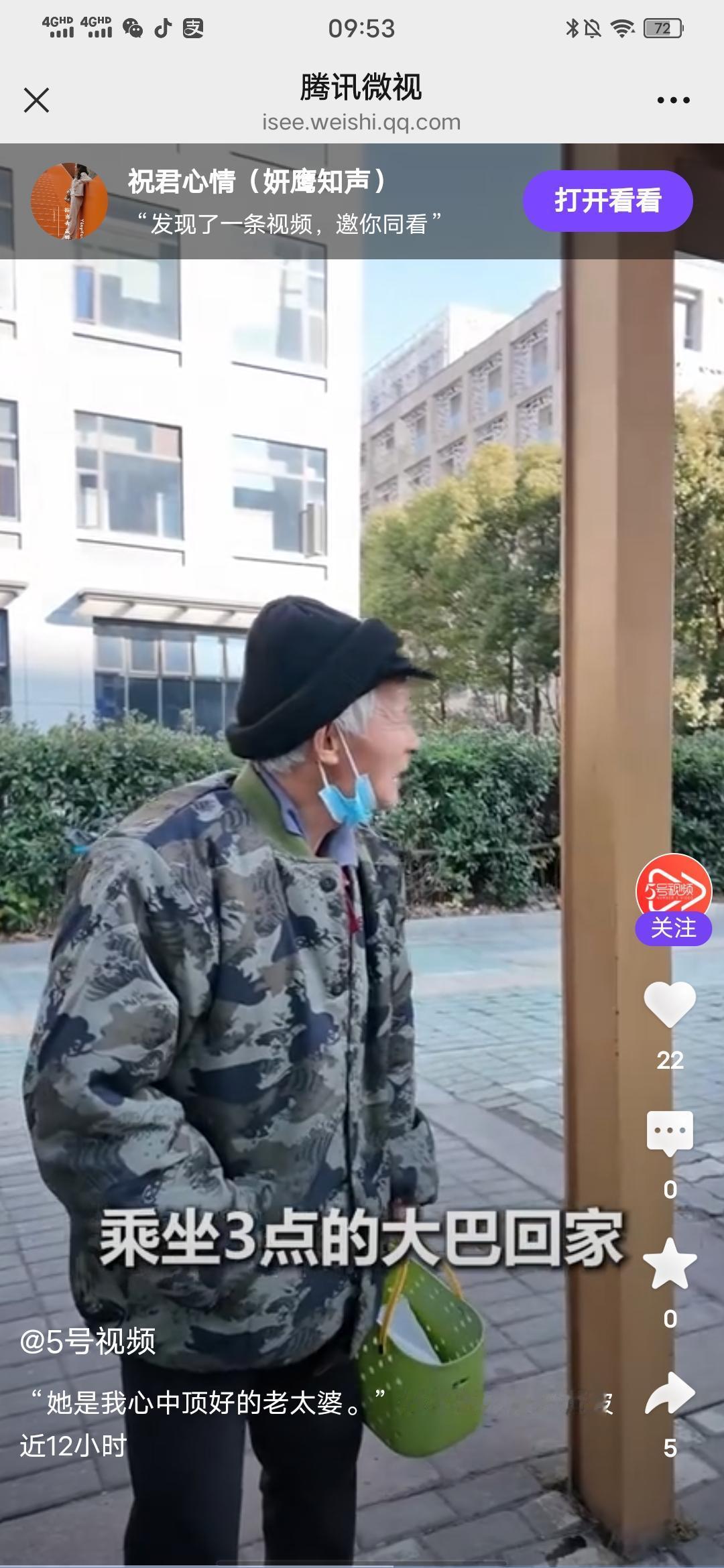 81岁老伯,在外奔波12小时,只为与妻子相聚30分钟,哭惨了! 来自五号视频的